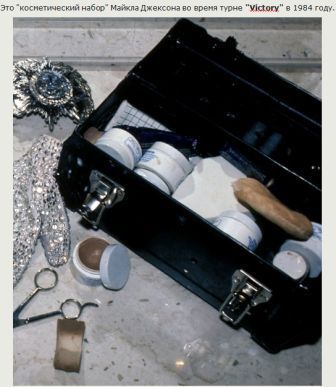 LЁLЯ Опубликовано 4 июня, 2011 Опубликовано 4 июня, 2011 чего?......)))) Сиди,я сам открою....(с) Как и любой, страдающий витилиго, на ранней стадии, Джексон пытался маскировать белые участки при помощи грима. На фотографиях и живых видео выступлениях с концертов, где не присутствует ретушь, очень четко можно наблюдать картину развития болезни. Сложно представить, сколько грима приходилось накладывать Майклу Джексону для каждого выступления. Особенно, если обратить внимание на штаны и микрофон. Это "косметический набор" Майкла Джексона во время турне "Victory" в 1984 году.