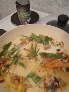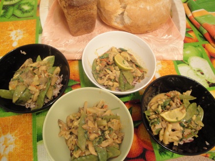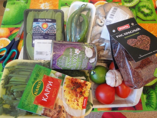 Ласка Опубликовано 11 марта, 2014 Опубликовано 11 марта, 2014 Веганское карри "Горячая штучка" Набор продуктов для собственно карри: 1. Грибы (были свежие вешенки, заменяемо на шампиньоны) 2. Свежий стручковый горошек (заменяемо на кабочок или черешковый сельдерей) 3. Помидоры сорта "сливка" (можно любые) 4.Цветная капуста (заменянмо на зелёное яблоко) 6. Кокосовое молоко. 7. Приправа карри "Камис" 8. Чеснок, имбирь, лайм, пертушка, острый стручковый перец... и всё что любите ещё Набор продуктов для гарнира к карри: Красный рис, можно булгур, израильский кус-кус, любую чечевицу, киноа, или вариации смесей данных круп. Я красный смешала с белым (чтобы остатки белого не залежались) и так нежнее получилось, один красный грубоват по текстуре, хотя, гораздо полезнее. Процесс: готовить лучше в сковороде-вок, или в сотейнике, у меня полу-вок. Масло раскалить очень хорошо, на сильном огне быстро обжариваем все ингридиенты, начинаем с грибов (они влагу отдают), потом помидор, потом капусту, стручки, и всё что душе угодно. После обжарки на интенсивном огне добавляем приправы имбирь, чеснок, и собственно порошок карри. Перемешиваем эту ароматную массу. и только затем вливаем кокосовое молоко. Всё хорошо мешаем и прогреваем, масса загустится, приобретёт характерный цвет... теперь доводим специи, добавляем щедро рубленой зелени и доли лайма. Всё женим минут 5. В это время домашние под разными предлогами начнут проникать на кухню... Пару ложек риса в глубокую чашку, и сверху карри. Долго звать не придётся никого! Приятного аппетита! На счёт продуктов, всё можно найти у нас в ЦУМе или в Уни-2 Вариантов карри масса. Приготовьте это сами!, не пожалеете, это будет круче чем в ресторане. В ресторане Вы теряете важную часть приготовления блюда - сумасшедший аромат, и возможность импровизации по своему вкусу, именно за это любят карри!!!