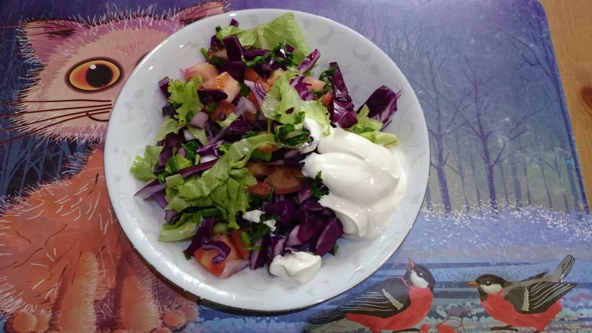 Vishеnka Опубликовано 10 мая, 2016 Опубликовано 10 мая, 2016 Салаты,)) весенний. Капуста красно качанная, томат, лук красныц сладкий, зелень - много разной, сметана( в ориг. Майонез но я не ем)