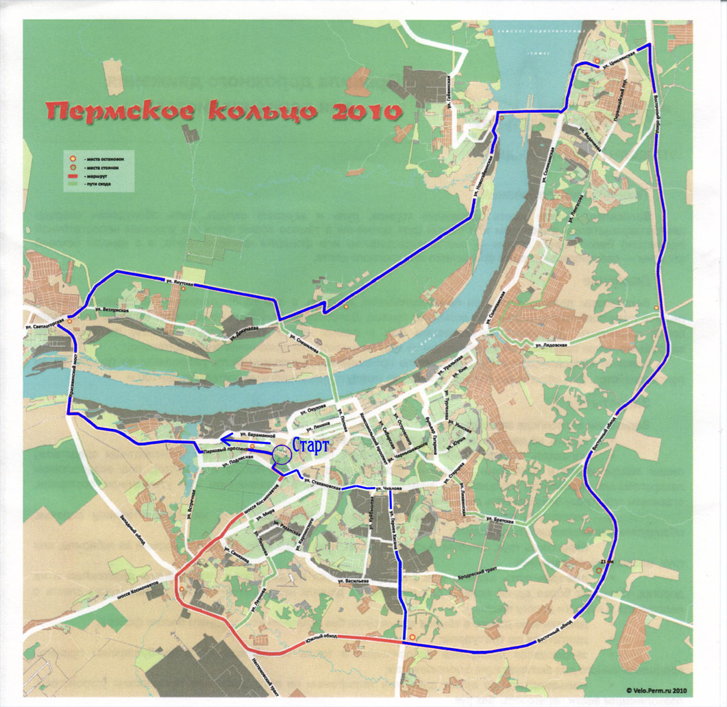 AlexDu Опубликовано 25 апреля, 2010 Опубликовано 25 апреля, 2010 Привет! А мы и не переставали кататься:-k Периодически выезжаем... Вот, например, в субботу с Костей впервые поучаствовали в ежегодном велопробеге "Пермское кольцо 2010", по сути, это открытие летнего велосезона - массовая организованная велопокатуха :wink: Маршрут трассы прилагаю, синим цветом выделил наш личный пробег O:) Итого, проехали около 90 км. И немного фотографий: Да, завтра планируем покататься, куда поедем, пока не знаю, на месте решим. Велкам!