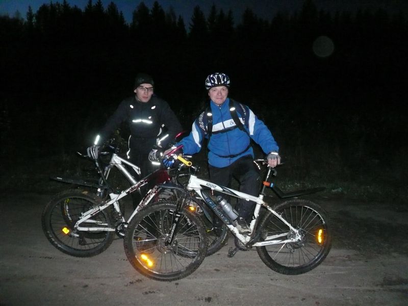 Sanchos Опубликовано 3 октября, 2009 Опубликовано 3 октября, 2009 Вчера, в пятницу, прокатились втроём по осеннему лесу, я, с Костей и Алексом ) Вот где настоящий экстрим, на грязных, размокших, сумеречных лесных тропах! Когда в поворотах заносит, на скоростном спуске байк начинает идти юзом, а затем вообще перестаёт слушаться всякого управления, и брыкается, как дикая лошадь, норовя выкинуть из седла, а на подъёме в гору заднее колесо срывается в пробуксовку... к концу поездки становится уже совсем темно, лишь маленькие пятнышки света от велофар, словно светлячки, пролетают сквозь лесную мглу. Блуждающие в темноте )