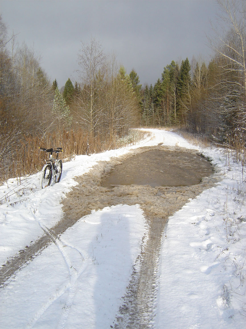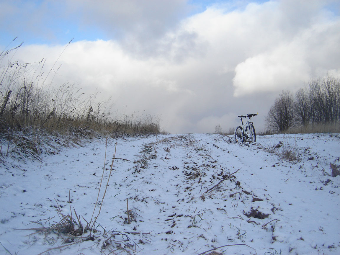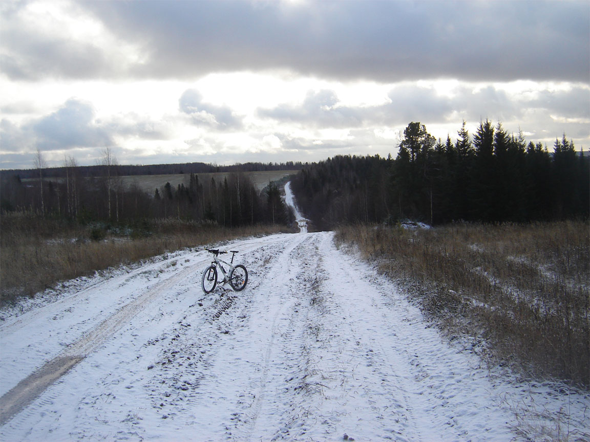 AlexDu Опубликовано 1 ноября, 2009 Опубликовано 1 ноября, 2009 В субботу погрузил вел в машину и укатил на дачу. За ночь немного подморозило, намело снежку, красота... Собрался и поехал. Маршрут простой - от Поселья (дача там) поехал в сторону Петрово. Дорога постепенно испортилась, пару раз приходилось идти пешком. Через 6.5 км понял, что дальше по такой дороге ехать не хочу и повернул обратно. Пока крутил педали, подумал - а не скататься ли до Пешково, что там, всего 10 км! Сказано - сделано. В Турлавах из-за одной особо правильной собаки пришлось немного пройтись ногами, зато дальше катилось хорошо и быстро. В Пешково заехал в гости к знакомым, погреться и выпить. Чаю. Обратно доехал быстро, всего один раз свернув с дороги и прокатившись до берега Камы. Общий пробег составил 32 км. В общем, сплошной позитив. Дальше краткий фотоотчёт о данной покатушке.