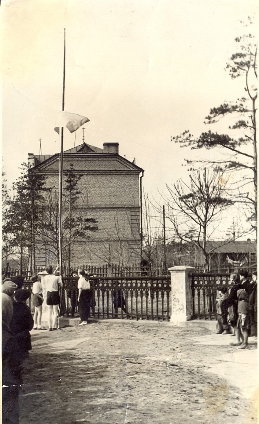Andreas Опубликовано 7 апреля, 2018 Опубликовано 7 апреля, 2018 У меня по химии итоговый трояк был, хотя выпускной экзамен на четвёрку сдал. Потом на первом курсе института преподаватель химии, удивленная моими глубокими знаниями, спросила в какой школе я учился. Вообще первые полгода в институте по химии дурака валял, большинство учебного материала было пройдено еще в школе. Ценю Вяткину как классного педагога, но лучше бы пятерку в аттестат и учителя попроще. Все равно химиком я не стал. Фото примерно из пятидесятых годов. Тогда не было еще высоких тополей на улице Пятилетки, а между школой и домом по ул. Пятилетки, 19 росли сосны(!) Забор, рядом с которым поднимают флаг, сохранился до начала 80-х годов. Через него было очень легко перелазить.)