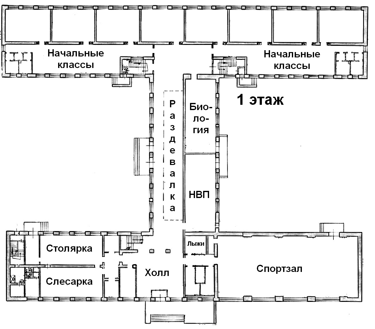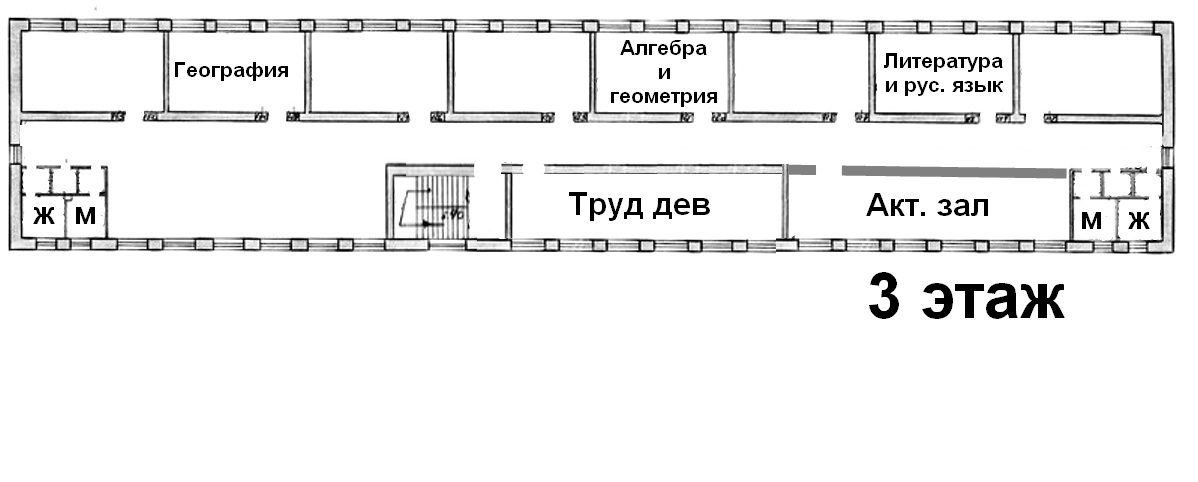 GARRY6490 Опубликовано 24 декабря, 2012 Автор Опубликовано 24 декабря, 2012 Скуки ради решил карту школы нарисовать из того, что помнил. Нашел проект нашей школы (слава всезнающему Интернету!) - был он 2С-02-10 или 2С-02-9 - короче похоже на них. Поэтажка с тематическими кабинетами, которые не забыл. Не смог сообразить, как вписать кабинет Четвериковой (завуч по воспит. работе), который был в проходе в левую рекреацию второго этажа. Там же был кабинет рисования, насколько я помню. Но не помню.
