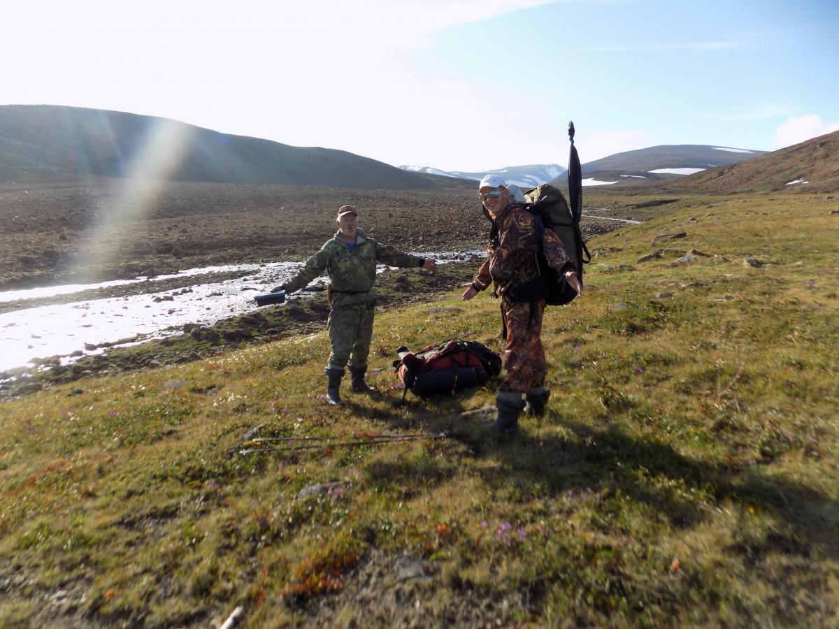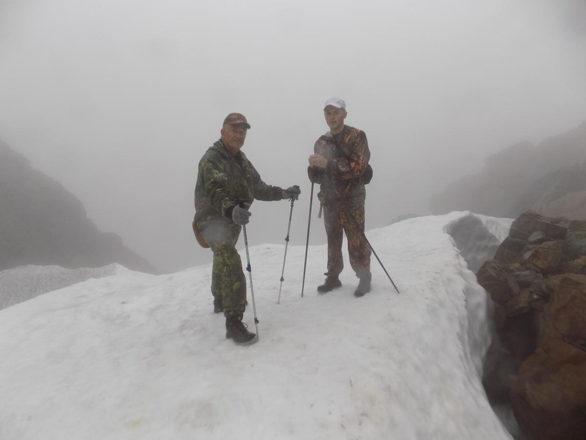 Бурый Опубликовано 18 августа, 2015 Опубликовано 18 августа, 2015 Подлечил свои колени, заболели после похода на Полярный Урал. Готов отчитаться с фотографиями. Поехали нынче вчетвером,опять через Ухту на Собь. Заброска уж очень удобная. Но в прошлом году не хватило гор, решили в этом году горную часть увеличить.Сперва сделали тренировочный выход на Райиз. Там надо было навестить нашего друга Диму Солнышкина трагически погибшего там в 2012году. Возле его фотографии теперь туристы возлагают цветы. Поднялись выше. На хребте много снега. Видимость в облаках была метров 50-100. Встретили там ребят из Сыктывкара. Они после купания в горном озере поперлись в страшные скалы. Мы им рассказали, что может случиться.И направили по нормальной тропе вниз. Димин пример -другим наука. Дальше сплав по Соби ни чем от прошлогоднего не отличался. Нормальная рыбалка началась только ниже Харпа. Правда крупного хариуса не было, гр от 300 до 700. Погода нас не баловала, но были и солнечные дни. Можно и позагорать за полярным кругом. Вторую пешку в горы мы начали с перехода на Хараматолоу с того же места.Андрей остался на Соби коптить хариуса. А я с двумя дембелями ушел на неделю в горы. До слияния Большой и Малой Хары км30 шли по правому берегу. В месте слияния смогли перебродить малую хару и пошли по вездеходке дальше. Вездеходка часто идет прямо по реке и нам частенько приходилось ее бродить. Частенько попадались рога оленей. На третий день ушли от реки выше к горам,идти стало легче. После трех изнурительных дней пешки дембеля полезли купаться. Временами налетал по взрослому ветер,Палатку пришлось защищать каменной стенкой. На четвертый день пешки пошли на восхождение на гору Блюхера. Ущелье очень красивое.Украшено огромными снежниками до километра в длину.В этой щели дембеля прячутся. Они прут как танки. А вокруг ЛЯПОТА. Под нами пропасти по пол километра.И вот она вершина!!!Европа от нас спряталась за плотные облака. Мы повернули опять в Азию. На спуске дембеля слепили девченку. Внучечку для меня. Больше не пускает. Сделайте кто нибудь пост, чтоб я мог продолжить.