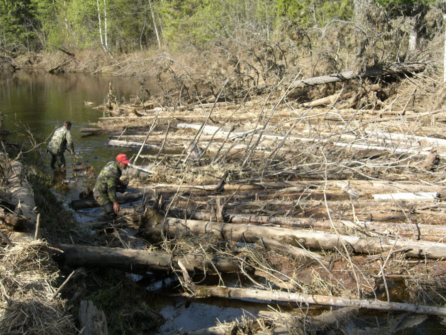 Гость Автор Опубликовано 21 мая, 2012 Опубликовано 21 мая, 2012 день второй: подъем, плотный завтрак, стопочка для настроения... за ночь вода упала еще на 20см. понимаем, что если сегодня не дойдем до канала, то в этом году уже не сможем. нам еще сильно повезло - буквально на днях кто-то хорошо пропилил проходы в завалах. некоторые закрылись, некоторые остались проходимые. но даже те, которые закрылись было легче растаскивать. пилили немного, на одном обнеслись метров 15, большинство проходили с ходу. канал. это не просто прямой как стрела ров длинной 17км. сам масштаб этого соружения поражает - народу на строительстве там полегло немерено, построена сложная гидротехническая система с водоотводными каналами и шлюзами. на некоторых картах и в гугле видны боковые каналы для управления уровнем воды в шлюзах т.е. баржи при прохождении канала элементарно шлюзовались. историки утверждают, что южные ворота были испорчены местным населением (редиски пля) эти чучмеки засадили южную часть канала ивняком, который мешал прохождению барж. за услуги бурлачения местный брали деньгу (типа рэкета) купцы даже в Москву жаловались на это безобразие. но видимо и тогда столица жила по своим законам. у северных ворот стоит деревня Канава. во времена работы канала представляла собой перевалочный пункт. типа погрузочного терминала. на берегах были построены огромные лабазы, где накапливались товары и ждали отправки на баржах грузоподъемностью до 100 тонн! южные ворота сейчас представляют собой ручеек глубиной по колено и шириной меньше метра остатки шлюзовых затворов, этим деревяшкам более 200 лет! фото на память и в обратный путь возвращаемся в лагерь. устали. подъем по Джуричу занял 6 часов, обратно спустились за 5. расстояние от устья до канала 45км. Ден решил всех удивить (он еще раньше заикался про сюрприз) достал уголь и ведро шашлыка! эслиб не вотка - умерлиб от обжорства. а так ведро свинины - просто закуска к мааленькой литрушке!