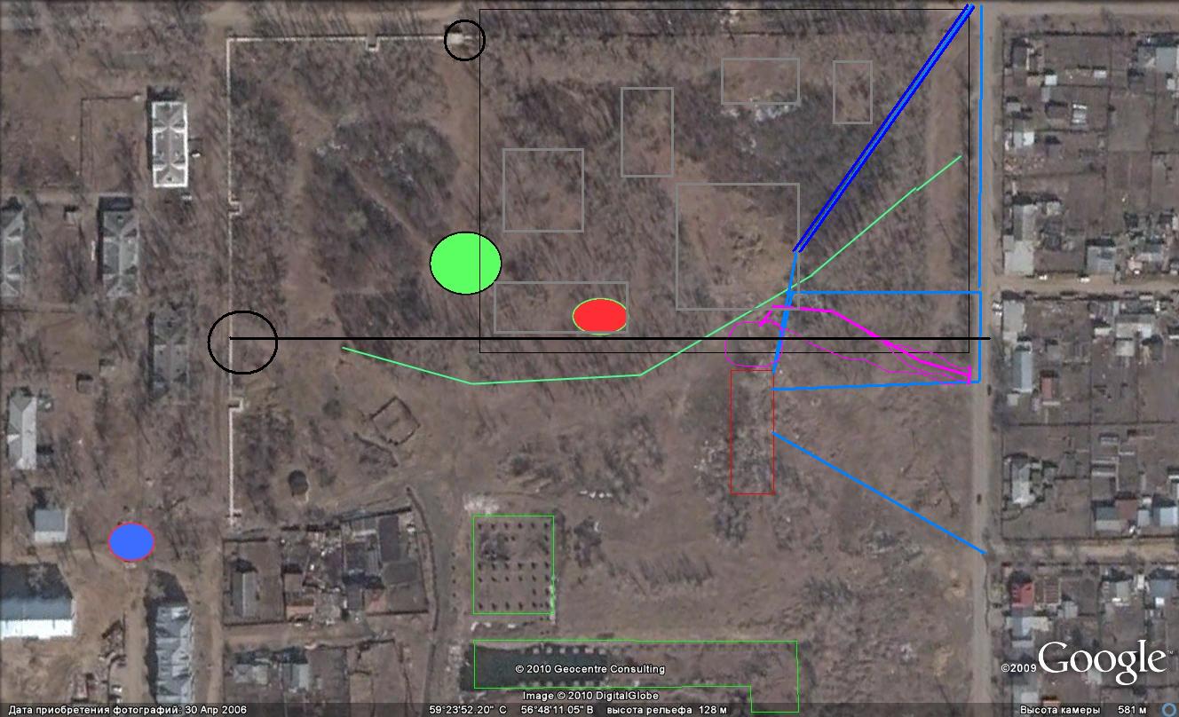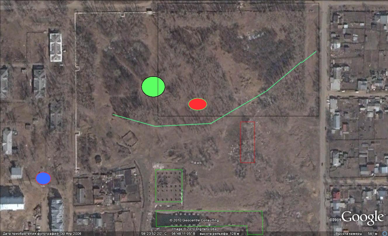 Z40 Опубликовано 5 марта, 2010 Опубликовано 5 марта, 2010 Осилил вот. 1) Место, где стоял дом, в котором моя мать выросла, и где бабка жила до 75г. 2) Поляна с футбольными воротами. 3) Где я лично видел остатки могил. 4) Матушка утверждает, что восточная и южная граница шли вот так.(зеленая линия)