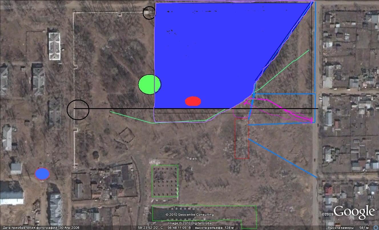 pavlik59 Опубликовано 9 марта, 2010 Опубликовано 9 марта, 2010 Северная сторона построенного жилого комплекса Синим отмечена северная граница построенных домов, пунктир - земляные разработки. Там где сортир стоит могилы были :-k Снимок дома сделан с точки где раньше дорога начиналась.