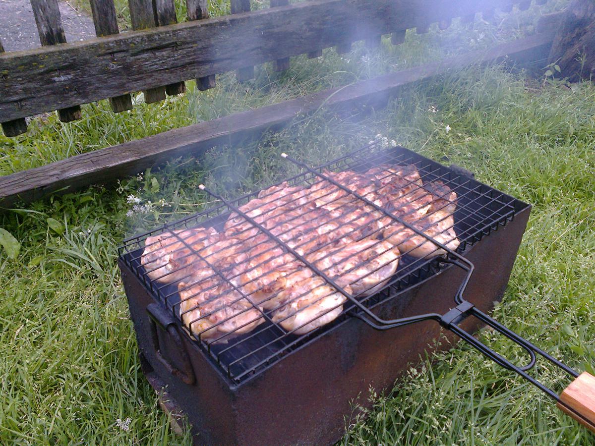Внук капитана Опубликовано 13 февраля, 2013 Опубликовано 13 февраля, 2013 Ну, я не знаю. А можно ли считать шашлыком мясо, приготовленное в микроволновке? Расскажу свой рецепт. Думаю, достаточно распространённый. Итак, свежее мясо - основа. Нежирная свинина. Оптимально - мясо вдоль хребта. Мясо нарезается довольно большими кусками: параллелепипеды (кажется, правильно написал это слово?) с длинами сторон, приблизительно, 10 и 5 см. Соль и нарезанный кольцами репчатый лук. В качестве маринада использую либо сок свежевыжатого лимона, либо гранатовый сок. Гранатовый сок, желательно, из стеклянной тары, производства Азербайджан. Мясо укладывается слоями в глубокую кастрюлю в следующей последовательности: слой мяса посыпается солью, обрызгивается соком, слой лука. Таких слоёв (мясо, сок, соль, лук) сформировать 3 - 4. Всё это под нетяжёлый гнёт в прохладное помещение часа на три. Ну а дальше - на шампур и на мангал. В процессе приготовления происходит карамелизация сока - шашлык приобретает приятный поджаристый вид. Ну и важно не пережарить, чтобы мясо было сочным. Лично я предпочитаю мясо слегка недожаренное. Как вариант, жарить на решётке. Тогда куски должны быть плоскими (толщиной сантиметра три). Важно: укладывать куски плотно друг к другу, от центра к периферии. Вот так, примерно: