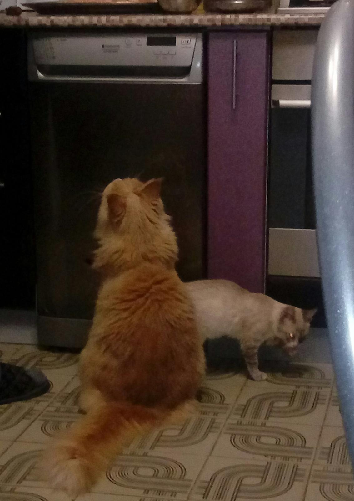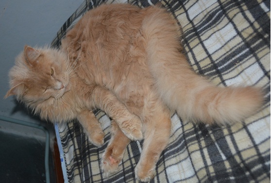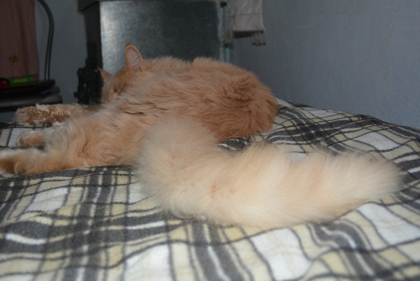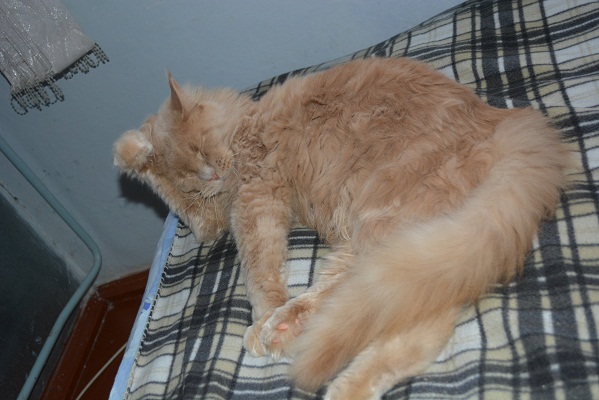 У нас тут местный кот Васька приблудился. В дом не пускаем, во дворе с курами живёт, но когда Генрюшу выпускаем, так Васька от счастья с ума сходит - и трётся об Генрюшу и ласкается... и везде ходит за ним.... Пришлось отмыть да отстирать это местное чудо. Купили всякие средства от блох, от глистов...