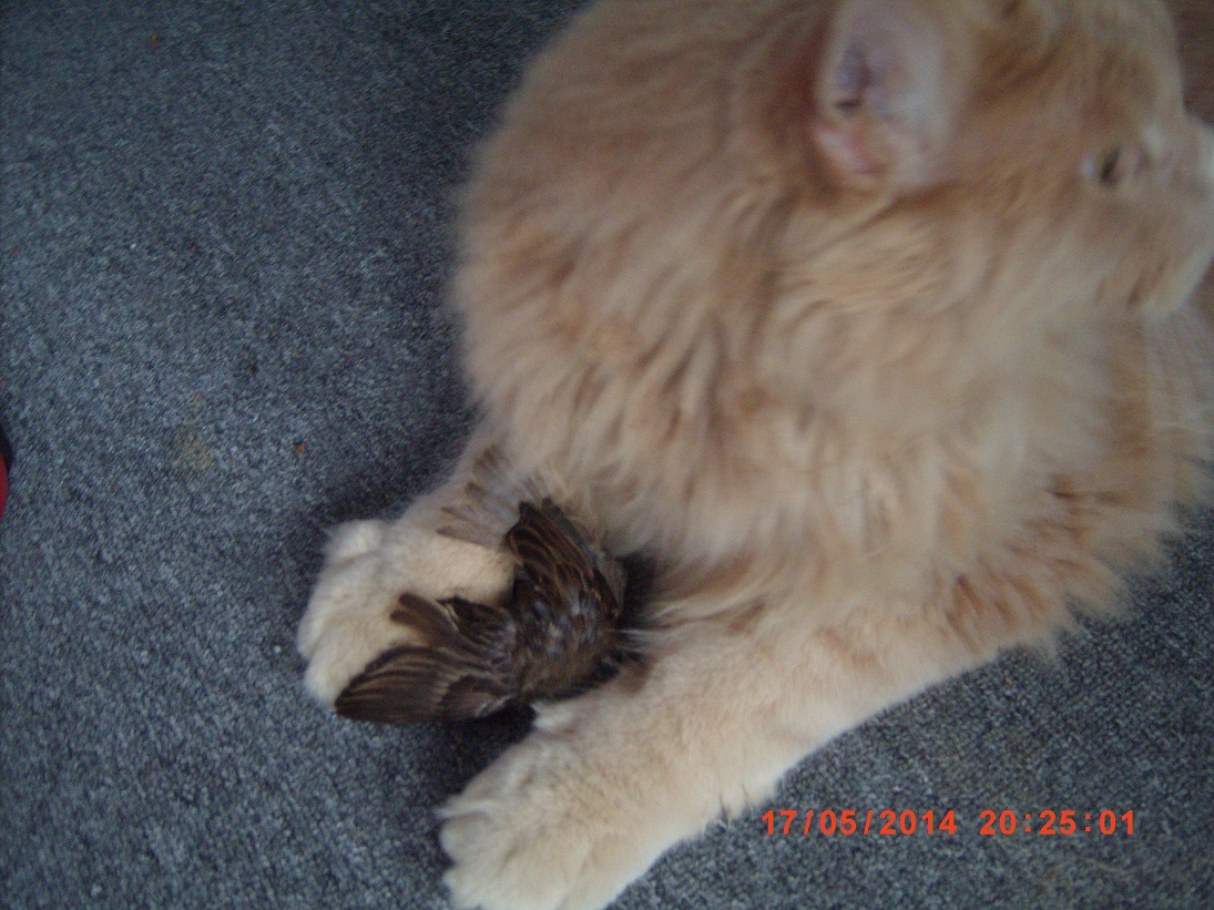 Наш Генри продолжает осваивать территорию, а заодно и проявляет навыки хищника-охотника. Сегодня птичку поймал, домой приволок
