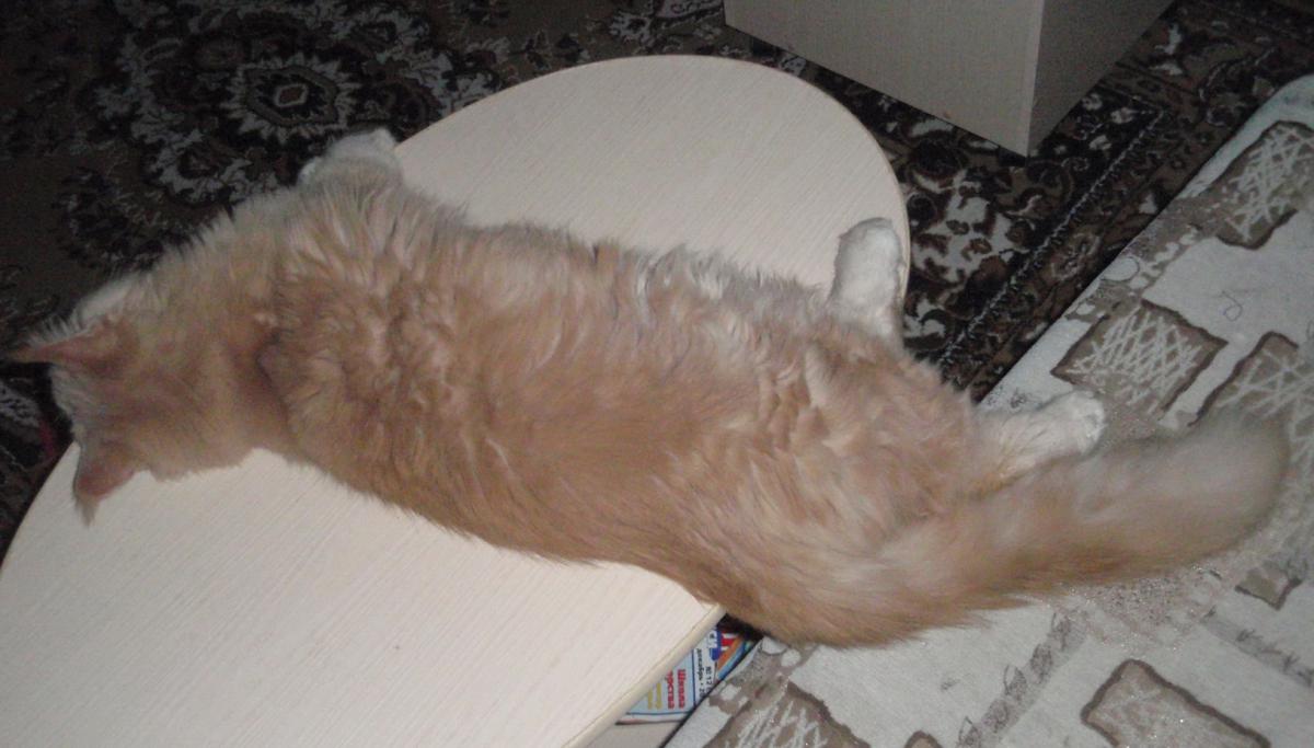 Лента Опубликовано 1 июля, 2013 Автор Опубликовано 1 июля, 2013 Наше чудо любит спать на столе. Поперёк не помещается. Благо, диван рядом, лапки подстраховывает )))))))))))))))))