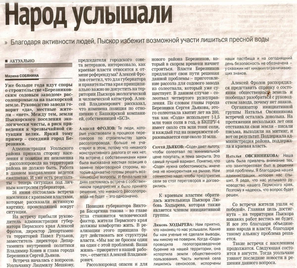 Avalon Опубликовано 8 августа, 2014 Опубликовано 8 августа, 2014 Не обошлось без скандала: соглашения о социально-экономическом партнёрстве и сотрудничестве между правительством Пермского края, ОАО «Еврохим»» и городом Березники. .....Глава администрации Усольского района Андрей Механошин отказался подписывать это соглашение. Мотивировал это он тем, что и жители, и депутаты Усольского района категорически против устройства скважин для откачки соляных рассолов на территории Пыскорского поселения только не понятно, а какая связь между Еврохимом и скважинами на территории Пыскорского поселения)))