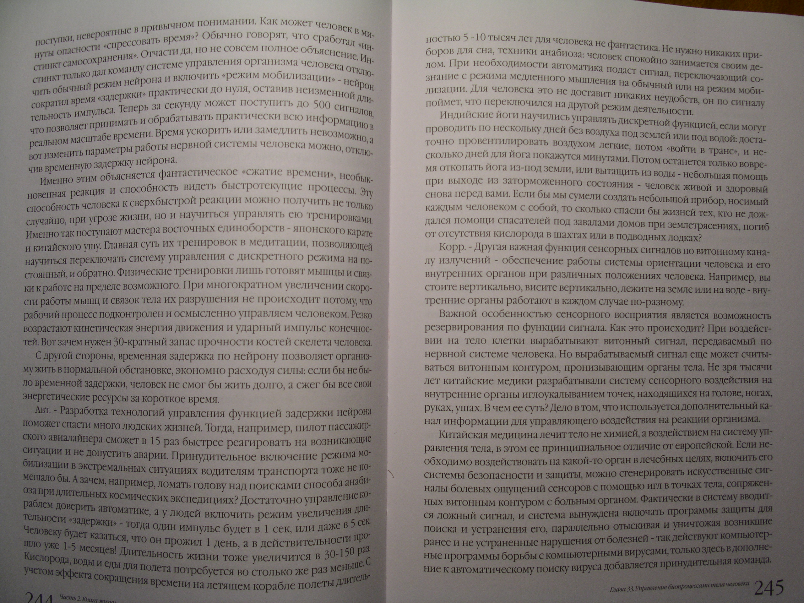 Master Yoda Опубликовано 7 ноября, 2009 Автор Опубликовано 7 ноября, 2009 Вычислена скорость передачи информации по нервам "Ученым удалось вычислить скорость передачи информации по нервам. Выяснилось, что эта скорость значительно падает при удалении от нейрона. В среднем импульсы, которые вызывают быстрые сокращения мышц имеют скорость от 50 до 100 м/с., болевые же импульсы имеют скорость проведения от 0,3 до 1,6 м/с. Интересно, что единственным органом, на котором нет болевых рецепторов, и который не испытывает боли – это сам головной мозг. Как известно, нервы являются проводниками информации от рецепторов расположенных по всему человеческому организму к мозгу и обратно. Передача сигнала происходит следующим образом: от органа или поверхности человеческого тела рецепторы нерва принимают информацию. Затем она в виде электрических импульсов передается по проводникам нервной системы в центральную нервную систему. Центральная нервная система расшифровывает полученную информацию, обрабатывает ее и передает в участок мозга с функцией управления. С этого участка опять же по проводникам нервной системы команда идет к нужному органу, который в соответствии с ней меняет свои действия, о чем тотчас же сообщается в центральную нервную систему. Нервные волокна, по которым происходит перенос информации называются аксоном. Они состоят из осевого цилиндра и двухслойной оболочки. Скорость передачи возбуждения по нерву зависит от структуры оболочки и диаметра аксона, поскольку передача идет импульсами от клеток оболочки к телу аксона. " http://www.science.yoread.ru/news.php?readmore=501 Об управлении тела человека