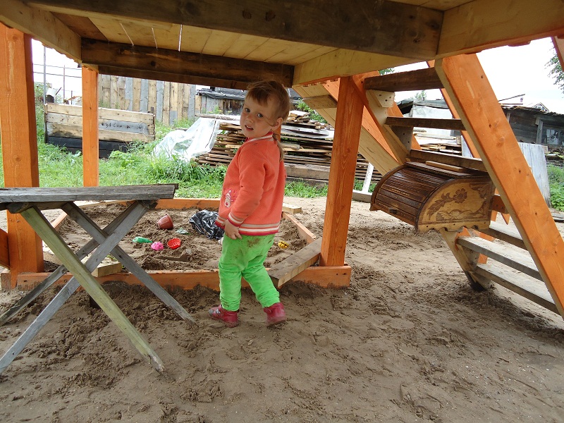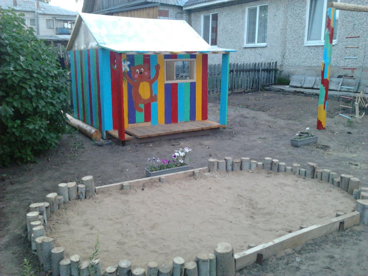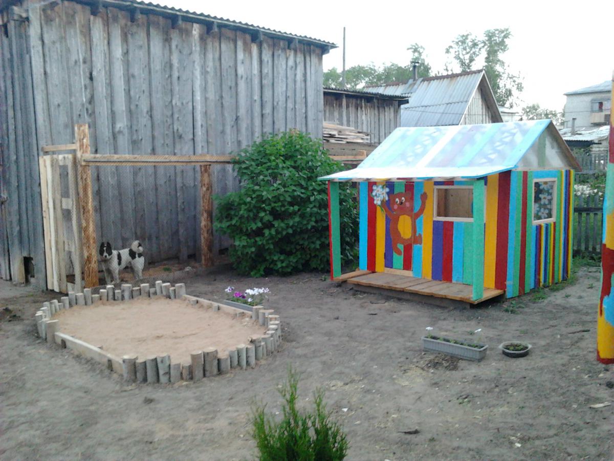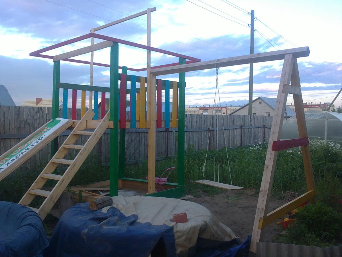 tata771011 Опубликовано 25 февраля, 2014 Опубликовано 25 февраля, 2014 Вот, похвастаюсь своей площадкой.Планируется сделать крышу,будет вроде домика на втором этаже.Внизу песочница.На горку стелим кусок линолиума,в штанах хорошо кататься.Под всю площадку стелили черный укрывной материал, сверху засыпали песок, но за два года всё засеялось подорожником и ещё какой-то травой.Лучше уж газоном засеять надо было.