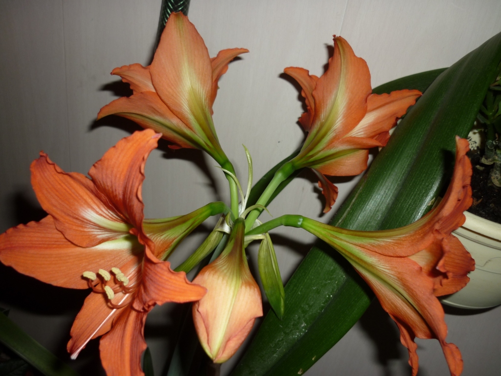 ShevT Опубликовано 7 апреля, 2013 Опубликовано 7 апреля, 2013 Хочу похвастаться первый раз гиппеаструм расцвел с соцветием из 5(!!!!) цветочков и тут же уже вторая стрелка лезет.... обычно по 4 цветочка было... до сих пор стоит цветёт (тьфу-тьфу-тьфу) а вторая стрелка уже на подходе... скоро расцветет.....