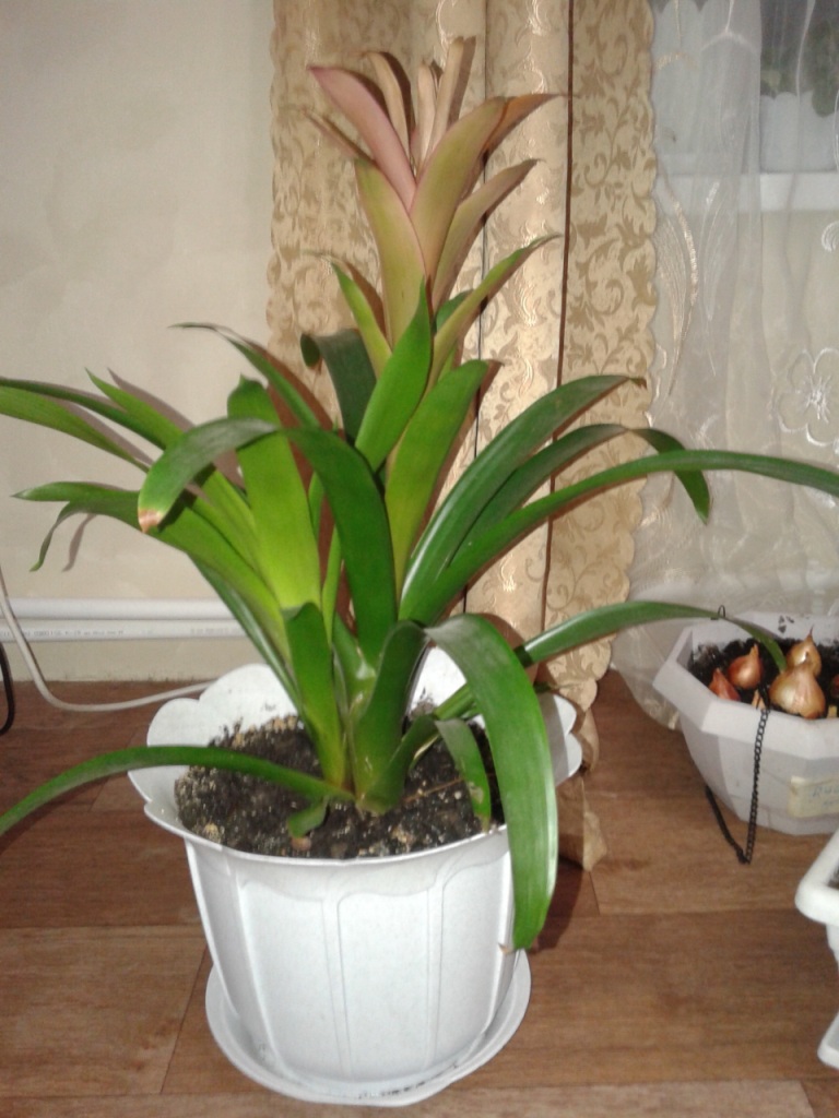 златовласка Опубликовано 29 декабря, 2014 Опубликовано 29 декабря, 2014 Подскажите, пожалуйста, как называется цветок. А то чего-то макушка стала сохнуть, а как и что делать даже не знаем. Это представитель бромелиевых гузмания.Цветок отцветет и растение начнет давать деток,со временем само взрослое растение отомрет.Растение из этого семейства цветут раз в жизни .