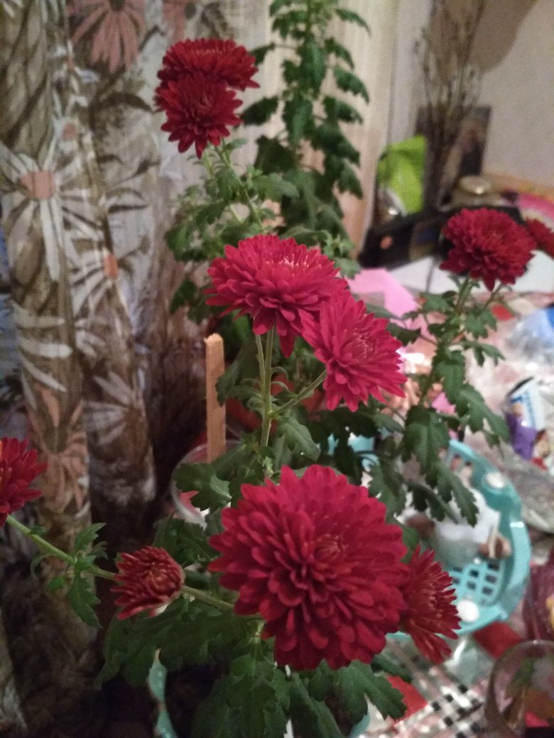 Алла Лаврова Опубликовано 17 ноября, 2017 Опубликовано 17 ноября, 2017 Зацвела моя хризантема у которой были обнаружены трипсы. Обработала все свои цветы один раз, но полным погружением в ёмкость с актарой с переворачиванием цветов(даже больших), с первого раза погибли трипсы все, пролила актарой землю, обработала места, где стояли цветы, теперь вот из этого отростка появились цветы, правда у материнского цветка они розовые, а у меня белые ромашки расцвели, пахнут так, как и положено хризантеме, цветение только началось, зимой ромашки)))) Кот пытается понюхать цветочек))) Всем доброго дня!
