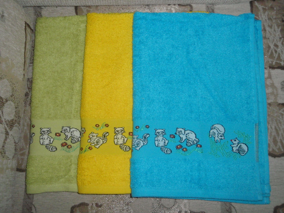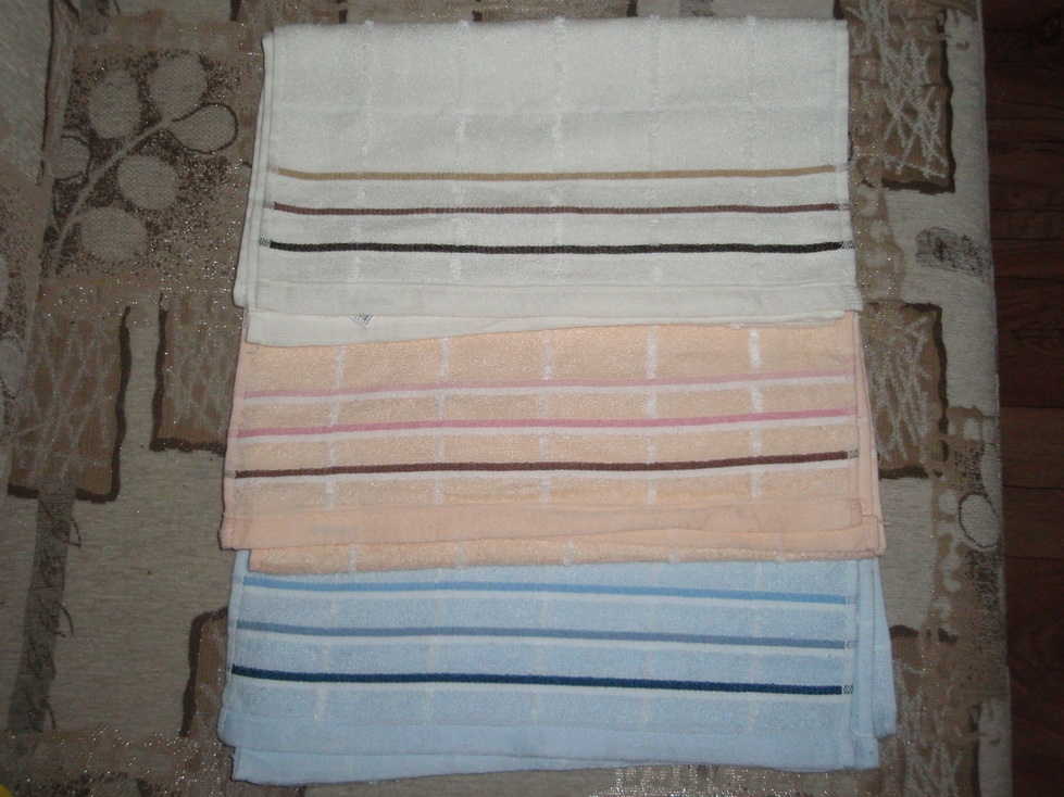 Лента Опубликовано 8 августа, 2013 Опубликовано 8 августа, 2013 Похвастаюсь и я своими полотенчиками Заказывала бамбуковые полотенчики с низкой плотностью (340гр/м2) и по смешной цене - всего 59 рублей. Размер 34х70. Очень порадовали. Мягкие, нежные, шелковистые. Впитывают изумительно! Попробовала сразу. После стирки наверно вообще шикарные будут (сейчас то все махровушки-петельки примяты, прижаты). Расцветки спокойные Также бамбуковые полотенца, только более плотные (500гр/м2). Цена 85 руб. Размер 50х70. Тоже доставили только положительные эмоции. Полотенчики с полосой из детских рисунков. Заказывала для дочки. Даже и говорить не надо было - сразу сказала - МОИ! Расцветки более яркие И ещё. Платочки носовые. В упаковке 12 шт. Упаковка стоит 110 руб В упаковке 3 расцветки по 4 шт. Заказом полностью довольна! Спасибо большое, Галина!