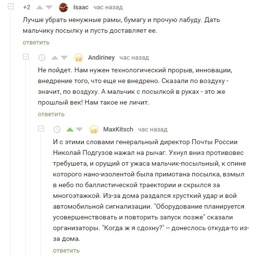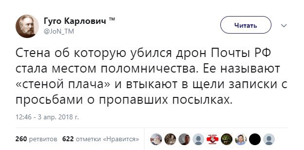 lacom Опубликовано 2 апреля, 2018 Опубликовано 2 апреля, 2018 а я думаю почему стоимость заказных выросла на 5 рублей, а оно воно чё..... почте России не на что коптеры покупать