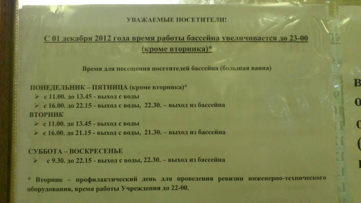 Jittelь Опубликовано 8 декабря, 2012 Опубликовано 8 декабря, 2012 бассейн «Кристалл» 31.12.2012 г. и 01-02.01.2013г. – выходной день 03.01. по 08.01.2013 г. - с 10:00 до 23:00 часов (выход из воды 22:15);
