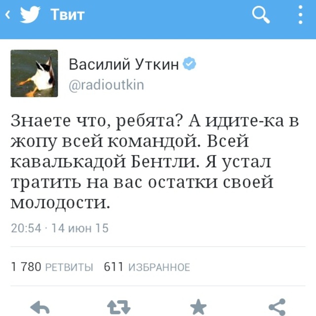 Z40 Опубликовано 15 июня, 2015 Опубликовано 15 июня, 2015 Да днища они, все эти шатовы-..уятовы, их уровень, который ниже плинтуса, давно понятен. И очень надеюсь, что мудку в кремле намылят жопу за контракт с доном. ...рукожопые! Ну руки то у них как раз в порядке, на банкомате кнопки нажимают исправно. Кстати воротчик единственный, кто боле-менее сыграл.