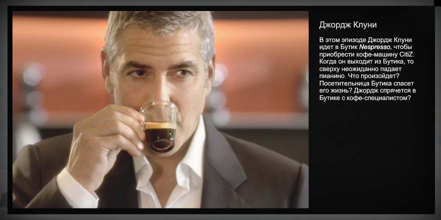 Димыч 74 Опубликовано 4 декабря, 2009 Опубликовано 4 декабря, 2009 Для начала: Классный ролик с Джорждем Клуни и Джоном Малковичем. Реклама кофе-машин. Герой покупает кофе-машину и на выходе из магазина на него падает рояль. Попадает на небеса, где ему предлагают поменять кофе-машину на жизнь. Три варианта продолжения на выбор. Смотреть все три, со звуком. Ссылку-то забыл.. http://www.nespresso-whatelse.com И вот картинко: - - - - - - - - - - - - - - - - - - - - - - - - - - - И вот ещё (сначала в другой теме разместил, так что кто видел, можете не смотреть) Стоп-кадр длиной в несколько минут Реклама телевизора Скриншот: