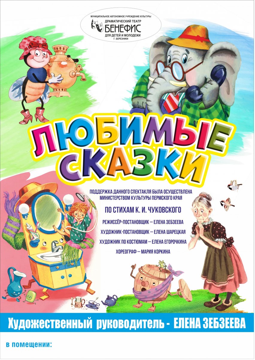 adminbenefis Опубликовано 29 сентября, 2020 Автор Опубликовано 29 сентября, 2020 (изменено) Муниципальное автономное учреждение культуры "Драматический театр "Бенефис" для детей и молодёжи" г. Березники Поддержка данного спектакля была осуществлена Министерством Культуры Пермского края «Любимые сказки» (0+) Дорогие друзья, уважаемые зрители! Театр «Бенефис» рад представить Вашему вниманию «Любимые сказки» – спектакль для самых маленьких по произведениям Корнея Ивановича Чуковского! Детская поэзия Чуковского настолько талантлива и проста, что большинство из нас может свободно цитировать её – будь то «Тараканище», «Федорино горе», «Телефон» и другие сказки в стихах. Причём все они учат детей обыкновенным, но до чего же хорошим вещам: бережному отношению к себе и окружающему миру; учат послушанию, доброте и состраданию, прививают любовь к жизни. А режиссёр спектакля Елена Зебзеева в свойственной театру форме поставила яркий, изобретательный спектакль для совсем маленьких ребят – с лёгким юмором, приятной музыкой и, конечно же, прекрасной игрой артистов театра «Бенефис». Приходите на Премьеру, друзья! Сказка – это наша работа! Изменено 5 октября, 2020 пользователем adminbenefis