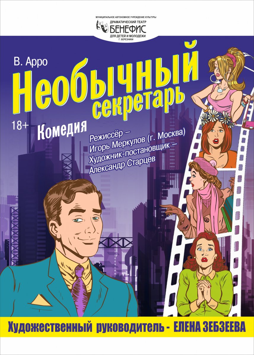 adminbenefis Опубликовано 25 ноября, 2020 Автор Опубликовано 25 ноября, 2020 (изменено) "Драматический театр "Бенефис" для детей и молодёжи" в помещении КСЦ "Азот" (ДК им. Ленина)Репертуар - Декабрь 20204 - пятница - 18.00 "Необычный секретарь" (18+) Комедия На сцене театра «Бенефис» успешно проходит показ спектакля «Необычный секретарь» по пьесе Владимира Арро (18+). …Дождливой весенней ночью приёмная некоего учреждения постепенно наполняется женщинами. В приёмной есть дверь, за которой решается судьба их мужчин, но секретарь не пускает туда никого, и почти ничего не объясняет… Эта сюрреалистическая история любви, притворства, верности и предательства прежде всего рассказывает о женщинах и их порывах. Режиссёр спектакля – профессионал международного уровня Игорь Меркулов, актёр театра драмы, режиссёр музыкального театра (г. Москва). Ждём Вас на нашем спектакле! Продолжительность спектакля – 1 час 20 мин. Цена билета: 300 руб. Возрастное ограничение 18+ Обращаться по телефону: 8 (3424) 209-206 (касса)5 - суббота - 12.00 "Проделки Бабы-Яги" (0+) Музыкальная сказка5 - суббота - 15.00 "Поющий Поросёнок" (0+) Музыкальная сказка6 - воскресенье - 12.00 "Приключения Фунтика" (0+) Сказка6 - воскресенье - 15.00 "Сказка-раскраска" (0+) Любимые сказки для самых маленьких11 - пятница - 18.00 "За двумя зайцами" (12+) комедия12 - суббота - 12.00 "Красная шапочка" (0+) Музыкальная сказка12 - суббота - 15.00 "День рождения кота Леопольда" (0+) Забавные истории13 - воскресенье - 12.00 и 15.00 "Карлсон снова прилетел" (6+) Сказка в одном действии Изменено 25 ноября, 2020 пользователем adminbenefis