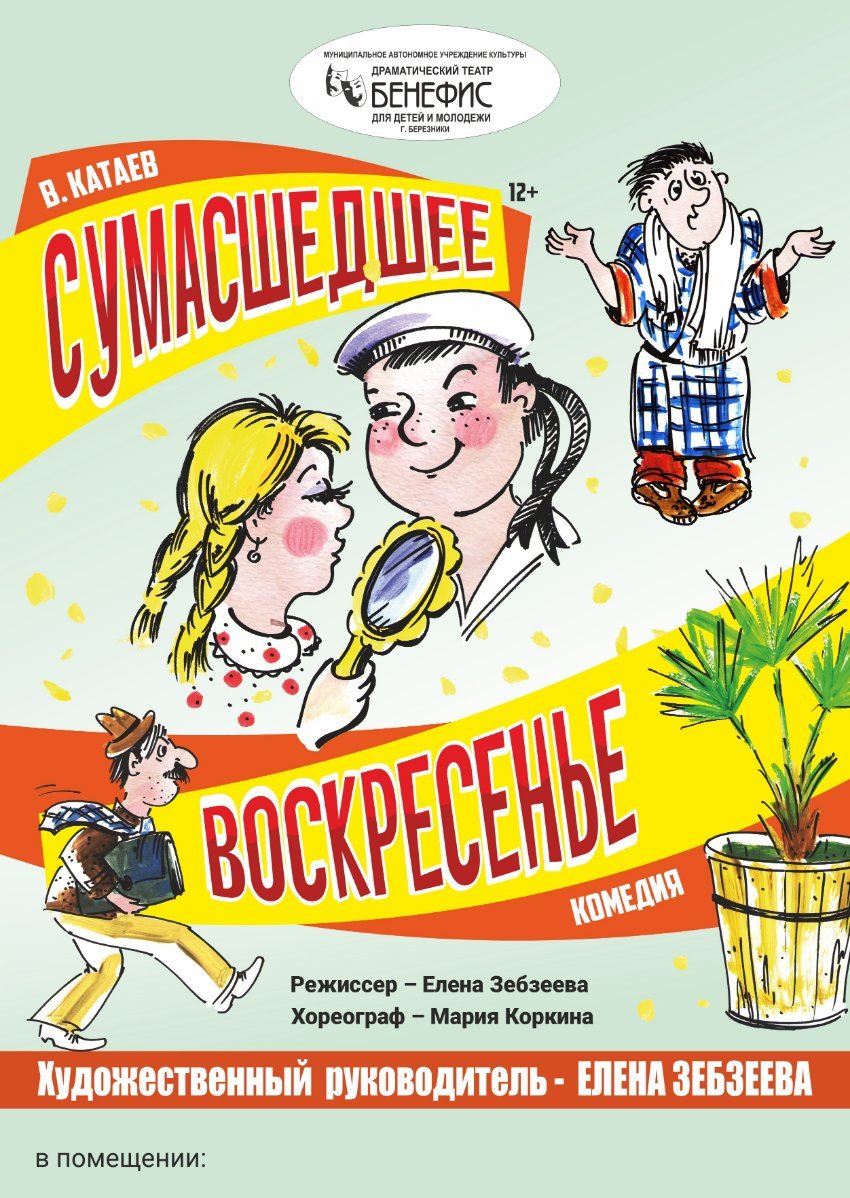 adminbenefis Опубликовано 7 февраля, 2023 Автор Опубликовано 7 февраля, 2023 «СУМАСШЕДШЕЕ ВОСКРЕСЕНЬЕ» БУДЕТ В МАРТЕ!Здравствуйте, дорогие друзья, уважаемые зрители! Мы знаем, что Вам хочется посещать не только дневные, но и вечерние спектакли театра «Бенефис». И особенно часто нам звонят с просьбой показать ретро-комедию «Сумасшедшее воскресенье» (12+), недавняя премьера которой несколько раз собрала аншлаг. Что ж, рады сообщить Вам, друзья – мы покажем «Сумасшедшее воскресенье» 11 марта в 18.00!И Вы уже можете приобрести билеты, в том числе по Пушкинской карте:https://teatrbenefis.ru/afisha-2/mart-1/#jil=/widget/..Ждём Вас! Телефон: 8 (3424) 209 206 касса Сайт театра: teatrbenefis.ru E-mail: teatr-benefis@yandex.ru