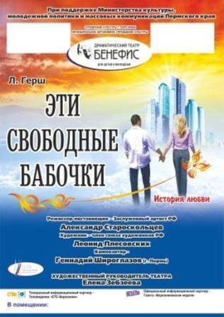 adminbenefis Опубликовано 17 февраля, 2023 Автор Опубликовано 17 февраля, 2023 (изменено) 22 марта - начало в 15 часов "Эти свободные бабочки" (12+) - история любви В основу постановки легла история, рассказанная американским драматургом Леонардом Гершем. Начало ее банально, а вот финал… Молодой человек, освободившись наконец-то от материнских объятий, устремляется покорять Нью-Йорк. Птенец вылетел из гнезда и, совершая свой первый полет, наслаждается долгожданной свободой. Правда, знакомая ситуация? В съемной комнатушке он встречается со своей новой знакомой, соседкой по этажу, девицей, такой же, как и он, молодой и необремененной проблемами нравственности. Их отношения начинают развиваться настолько стремительно, что буквально за несколько часов после начала их бурного романа герои испытали радость встречи и горечь расставания, любовь и ревность… Дети до 12 лет на вечерние спектакли не допускаются. Дорогие друзья, открыта электронная продажа, билеты Вы можете приобрести онлайн! Все молодые люди, кто уже получил Пушкинскую карту, также могут приобрести билет онлайн на сайте театра «Бенефис» и в группе театра «Бенефис» «ВКонтакте». Телефон касса: 8 (3424) 209 206 https://teatrbenefis.ru/afisha-2/mart-1/ Изменено 17 февраля, 2023 пользователем adminbenefis