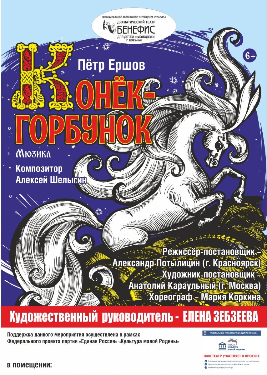 adminbenefis Опубликовано 23 ноября, 2022 Автор Опубликовано 23 ноября, 2022 "Драматический театр "Бенефис" для детей и молодёжи" На сцене КСЦ "Азот" (ДК им. Ленина)РЕПЕРТУАР - Декабрь 20223 - суббота - начало 12.00"Волшебное кольцо" (6+) - сказка3 - суббота - начало 15.00"Каникулы в Простоквашино" (0+) - сказка10 - суббота - начало 12.00"Конёк-горбунок" (6+) - мюзикл11 - воскресенье - начало 12.00Премьера!"Приключения Буратино" (6+) - музыкальная сказка14 - среда - начало 15.00Премьера!"Сумасшедшее воскресенье" (12 +) - винтаж-комедия Телефон: касса - 209-206 Сайт театра: teatrbenefis.ru Уважаемые зрители! Теперь Вы можете приобретать билеты на наши спектакли через онлайн-продажу в группе театра «ВКонтакте»https://vk.com/app7953117_-68887256 На сайте театра «Бенефис» - https://teatrbenefis.ru/afisha-2/А также приобрести билеты по Пушкинской карте.
