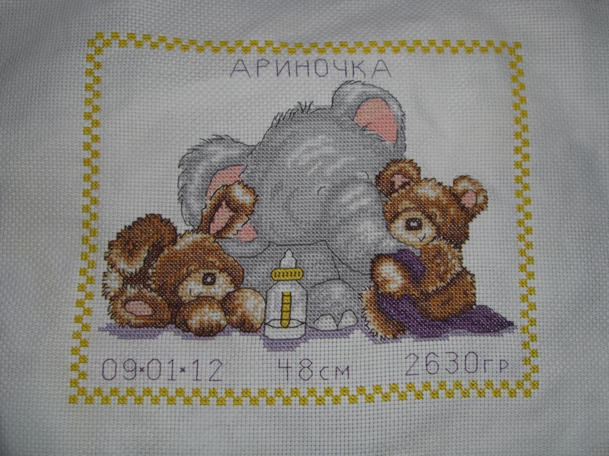 Машентус Опубликовано 3 октября, 2014 Опубликовано 3 октября, 2014 МММ..... Маша, тебе как то предлагали метрику на подарок вышить, так и не увидела чем дело кончилось. Просто интересно, что получилось не не не, девушка просто искала рукодельницу, которая возьмется. На обещании сфоткать набор все и остановилось, может, кто-то другой взялся. Вышивать на заказ, да еще к определенной дате это не про меня, во-первых, дети, как тут угадать, дадут или нет работать)) а во-вторых, я свои работы или дарю или себе оставляю, т.к. это творчество, а не ремесло)) вот как то так))) когда то вышивала подруге на подарок такую (тут она не отглажена и не оформлена еще):