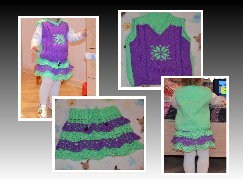 sidiu Опубликовано 10 ноября, 2014 Опубликовано 10 ноября, 2014 Ну вот и извела я весь акрил... до последней ниточки. На резинку для проймы рукавов у жилетки не хватило совсем, пришлось последней ниточкой просто крючком обвязать)) Теперь будем весну ждать!! мне нравится сочетание мятного и фиолетовых цветов - ни когда бы не подумала, что они так дружат)))