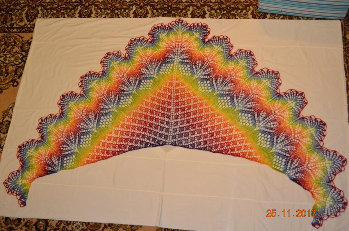 galcha Опубликовано 25 ноября, 2013 Опубликовано 25 ноября, 2013 Вот и моя вторая Кауни, получилась еще пуще прежней 0,9м х 2,1м. Спицы в этот раз взяла потолще 4,5. Это у меня подарок подруге. Осталось еще две связать из Энгельна, очень нравятся его схемы: вяжутся, несложно, а что самое главное для меня - не нудно. Дааа. Крутой подарок!!!!!! Наташа, сколько пряжи ушло?