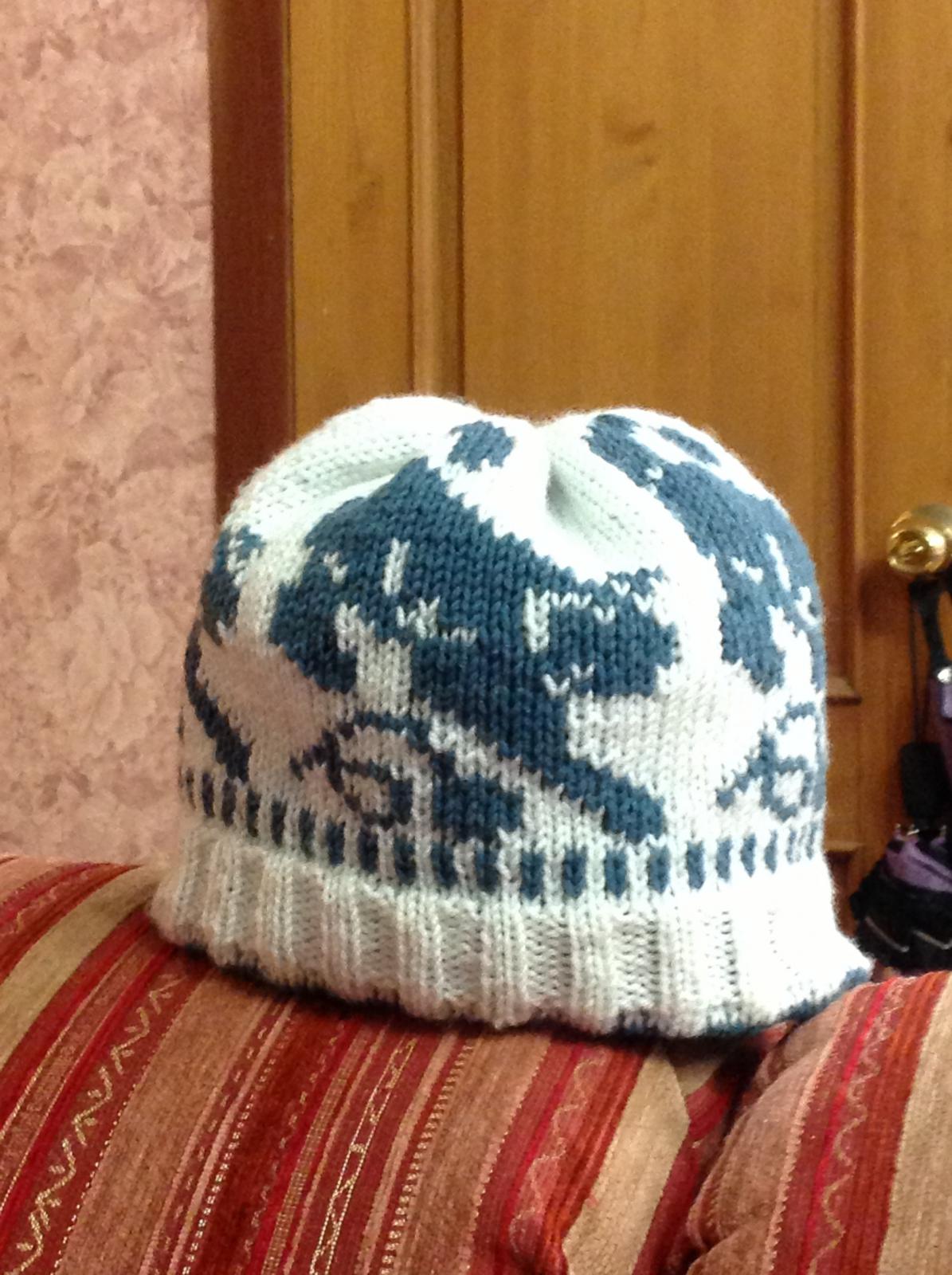 Марина Опубликовано 8 декабря, 2013 Опубликовано 8 декабря, 2013 Вот такие шапочки у меня связались: Первая проба пера, так сказать, мотив одинаковый, нитки: белая акрил с шерстью, синяя -хлопок с акрилом, немного разный метраж, белая 260 м/100 гр., синяя - 230 м/100 гр. Вторая шапка 100% мериносовая шерсть, 250м/100гр Использованы 5 разных кошек Обе связаны двусторонним жаккардом на круговых спицах Первую вязала неделю, вторую связала за два вечера.