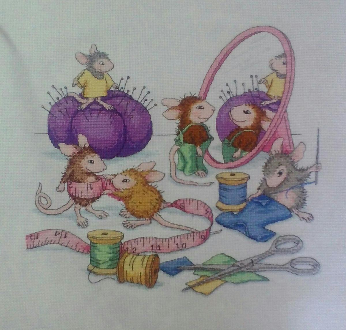 sidiu Опубликовано 19 июля, 2015 Опубликовано 19 июля, 2015 Похвастаюсь немного. Закончила, но ещё не оформила. У нас в семье уже все выбрали кто есть кто на этой картинке:) Работа называется "Швейные мышки" от Dimensions. Канва 18 и бэк стича просто немерено. Галя плюсов пока нет, поэтому так+++++!!!!! Очень интересная картинка!!!! Все ты теперь навышивалась? Вернешься в вязание?