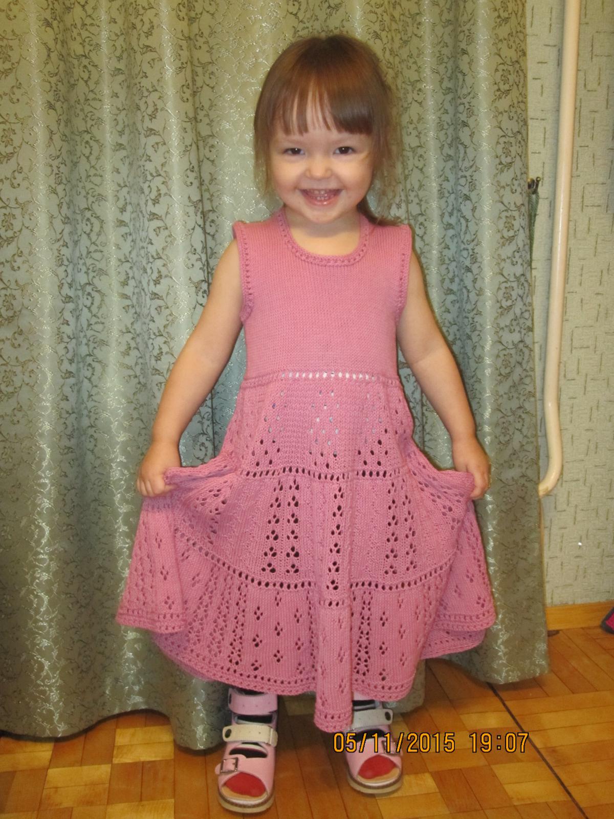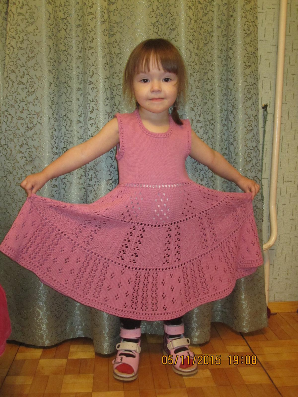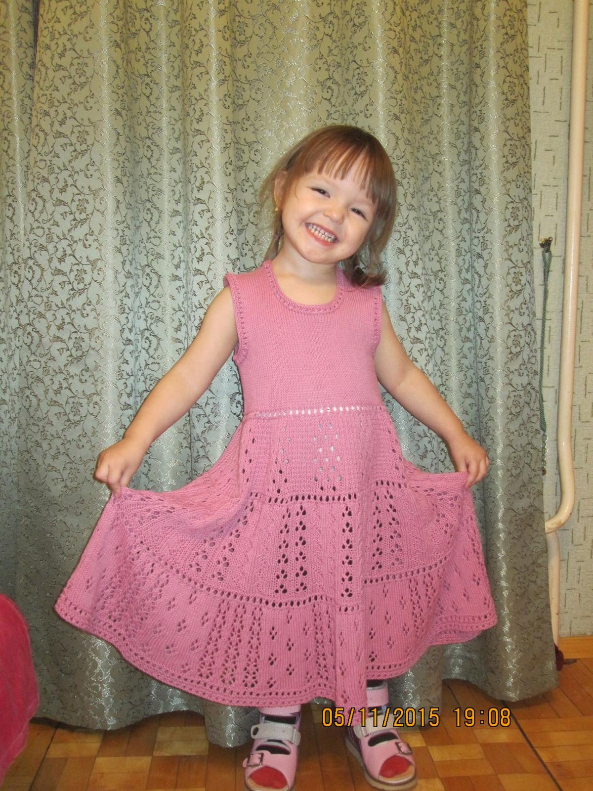 sidiu Опубликовано 5 ноября, 2015 Опубликовано 5 ноября, 2015 Вот связалась обновочка Алише. Платьишко пока большевато, потому что размер специально на 4 года вязала. Ниточки Bella от Alize. Расход почти 6 моточков. Алия запищала от восторга: мне нравится! мне нравится! принцесса! Так здорово!!!!!! Алиша такая взрослая!!!! А я не умею вязать на вырост
