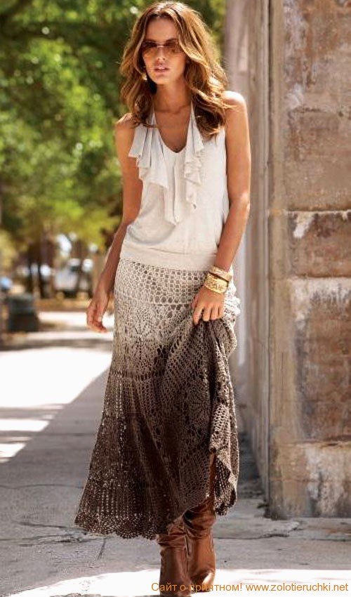 vfvf Опубликовано 9 января, 2014 Опубликовано 9 января, 2014 Девчонки помогите, подскажите хочу вот такую юбку на лето и чтоб вот так ниточка переходила я так понимаю что это одна нитка не комбинированное. может кто такие нитки подобные видел. Похоже что эту юбку связали из натурального цвета, а потом низ макнули в краску. Вторая полоса фрагментов связана кругами. а окрашена только нижняя часть