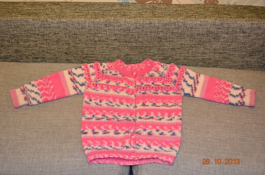 Татка Опубликовано 28 октября, 2013 Опубликовано 28 октября, 2013 Девочки, подскажите как правильно вязать из секционной пряжи, чтоб рисунок хоть более менее совпадал? Вот смотрите, вязала так же как Вы, получилось примерно то же самое, только рукава симметричнее. Думаю, так получается из-за того, что секции одного цвета короткие. Если вязать небольшие детали: отдельно спинка, отдельно полочка, рукава узор будет получаться одинаковым, главное начинать с одного и того же участка цвета.