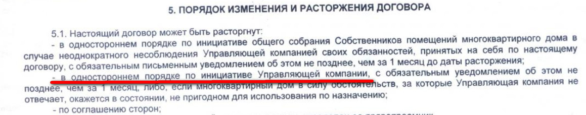 SANSAN Опубликовано 11 декабря, 2013 Опубликовано 11 декабря, 2013 Согласно Жилищного кодекса, право на досрочное расторжение договора управления МКД есть только у собственников. Соответственно УК такого права не имеет. Из старого договора: