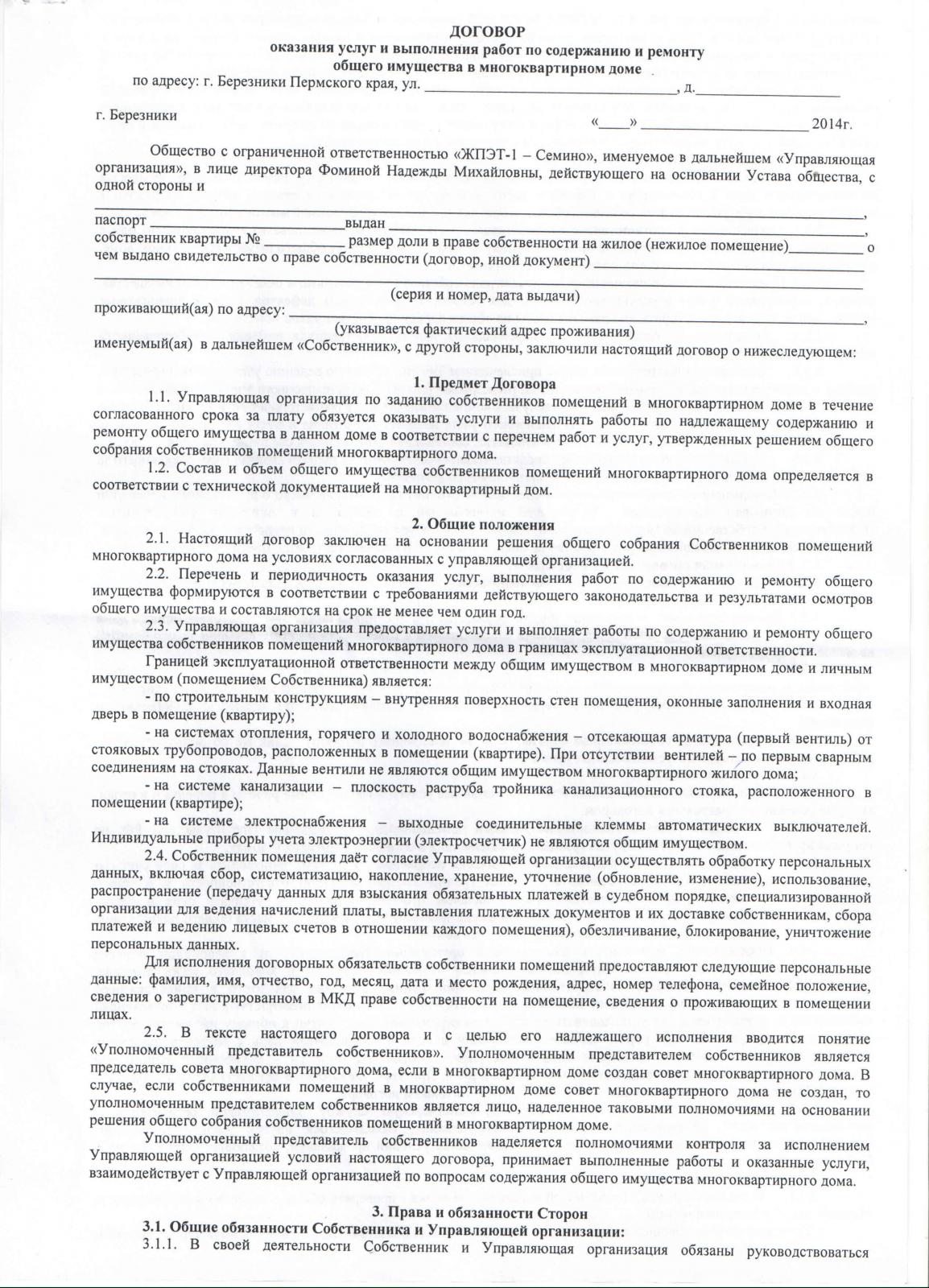 Гость Sea_soul Опубликовано 5 декабря, 2013 Опубликовано 5 декабря, 2013 Настоящий договор считается подписанным с момента его утверждения собственниками помещений на общем собрании собственников и вступает в силу с момента его подписания Хорошо... Зачем тогда в шапке данные мои, как собственника, включая и паспортные данные? Поясните ... Противоречивый пункт .... Любой юрист его оспорит .... Пока данный договор не подпишу я лично, он для меня не действителен .... Иначе бы был составлен простой Коллективный договор ...