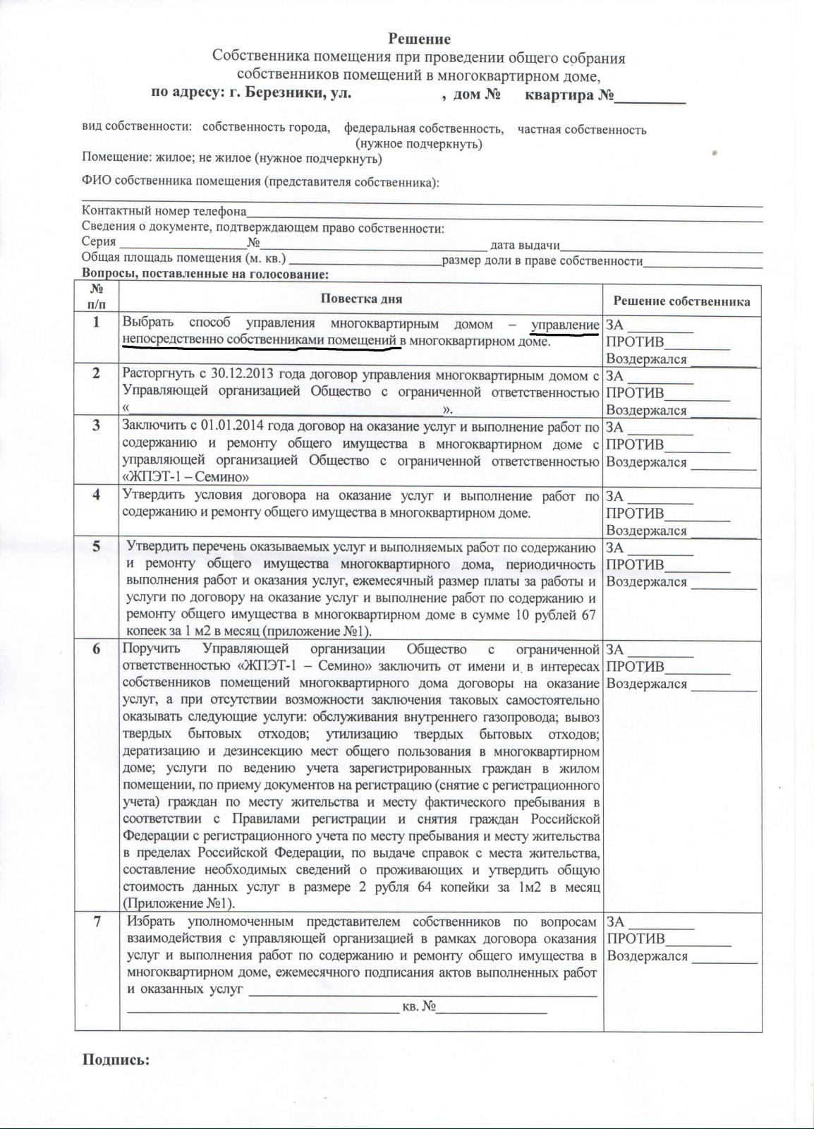 Симский Опубликовано 5 декабря, 2013 Автор Опубликовано 5 декабря, 2013 вот, что получилось женщина- сборщик подписей, сказала, что данный документ заверен адм.Б на вопрос, когда было очное голосование, сказала звонить по указанным телефонам Если верить женщине сборщице, то за свои муниципальные метры в которых проживают жильцы снимающие жилье по найму администрация уже проголосовала. не подойдет, картинка занимающая площадь, не информативна. Как из этой листовки понять что скоро пойдут купленные люди, купленные советы домов, для того что бы перевести меня на непосредственное управление? В предполагаемых договорах нигде жирным не выделено непосредственный способ управления . В договоре,то не обязательно, в протоколе общего собрания в форме заочного голосования этот пункт записан так: " О выборе способа управления в многоквартирном доме-УПРАВЛЕНИЕ НЕПОСРЕДСТВЕННО СОБСТВЕННИКАМИ ПОМЕЩЕНИЙ В МНОГОКВАРТИРНОМ ДОМЕ. Точка. не подойдет, картинка занимающая площадь, не информативна. Как из этой листовки понять что скоро пойдут купленные люди, купленные советы домов, для того что бы перевести меня на непосредственное управление? В предполагаемых договорах нигде жирным не выделено непосредственный способ управления . "Купленные советы домов", вы не могли бы мне назвать такие, можно в личку. Не хотелось, чтобы на наши собрания председателей Советов домов шпионы приходили. Как я вижу ситуацию (могу и ошибаться) Существуют лишь две формы управления домом: 1. Через ТСЖ, где собрание собственников решает стратегические задачи, а управляющий орган ТСЖ - тактические... 2. Непосредственное управление, где каждый сам за себя - заключает договора со всеми, с кем только можно... Вторая форма вообще никому не выгодна (поставщикам услуг и ресурса). То, что нам предлагают сейчас - что-то среднее и неработоспособное.... Но, позволяющее, тем самым, обманным путем грести с нас денежки .... Вы почти правы, существует три способа управления многоквартирными домами. Третий способ-это непосредственное управление домом самими жильцами. До 2012 года непосредственное управление было возможно, но даже и оправдано( деньги были у жильцов) и они ими распоряжались в домах, где не более 12 квартир. А в 2012 году в Жилищный кодекс внесли поправки, и теперь непосредственное управление возможно и на домах более 12 квартир, но при этом на доме должна быть управляющая организация( УПРАВЛЯЮЩАЯ), так написано в законе, хотя теперь она для жильцов становится подрядной. Каламбур, вините депутатов, коих вы выбираете законы нам сочинять. И многие законы с дырками, чем и пользуются ухари от ЖКХ. Вроде понятно сказал.