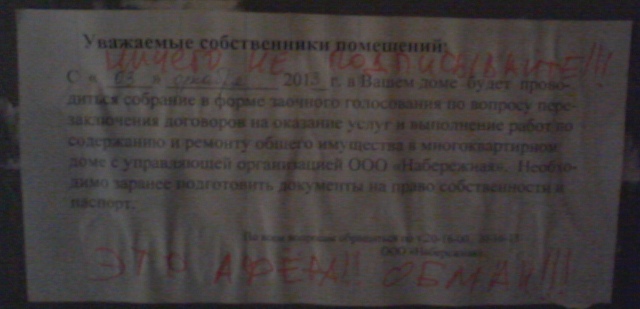 Avalon Опубликовано 7 декабря, 2013 Опубликовано 7 декабря, 2013 на нашем доме на листовке ук появилась таки красная надпись про аферистов! выше в теме RUM обещал похулиганить))