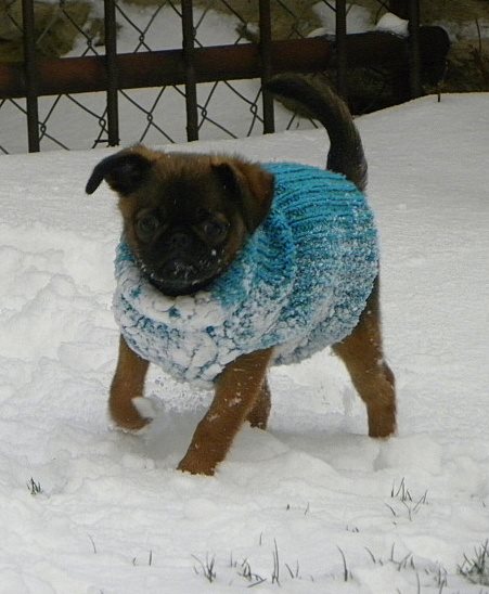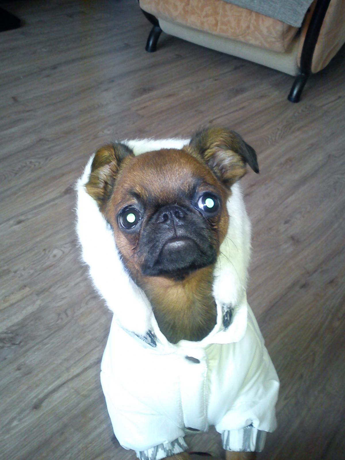Аркадьевич Опубликовано 13 декабря, 2013 Автор Опубликовано 13 декабря, 2013 Да не за что! Информация о породе Общий вид: Маленькая собака, умная, живая, крепкая, коренастая, цельная, с щеголеватой осанкой и сложением, привлекающая внимание своим почти человеческим выражением морды. Рабочие качества: Собака-компаньон. Поведение и характер: Ласковая, прекрасно ладит со своими сородичами и другими домашними животными. Эти собаки довольно бдительны, но лают негромко, поэтому идеальны для содержания в квартире. Рост в холке, вес: Стандартом не определен ~26-32 см Для этого класса кобелей и сук мелкого размера вес не должен превышать 3 кг. Для кобелей и сук крупного размера, т.е. весящих более 3 кг. вес не должен превышать 4,5 для кобелей и 5 кг для сук. Голова, хвост, туловище: Голова должна быть покрыта жёсткой, проволокообразной шерстью, немного более длинной вокруг глаз, мочки носа, на скулах и подбородке. Лапы короткие, округлые и компактные; подушечки и когти черные. Шерсть: Короткая Окрас: Красновато-бурый и чёрно-подпалый, допустима чёрная маска История породы: Бельгийский гриффон, Брюссельский гриффон, Пти Брабансон — декоративные породы собак, выведенные в Бельгии. Все три породы происходят от маленькой жесткошёрстной собачки, называвшейся Smousje, которая издавна встречалась в окрестностях Брюсселя. Порода собак Пти-брабансон известная в Бельгии и Европе декоративная порода собак. История пти барабансон начинается в Бельгии чуть более пяти веков назад. В первое время эти небольшие собачки использовались в качестве отличных крысоловов для домов, складов и портов. Их привлекательный внешний вид помог им "пробиться" в любимчиков к морякам и капитанам, которые стали брать с собой в плавание небольших собак, которые отлично прживались и на кораблях. Таким образом из рабочего крысолова, используемого небогатыми людьми, пти барабансон превратился в дорогую и декоративную породу. Исконное использование пти барабансон в качестве крысоловов в настоящее время просто не востребовано, так как грызуны редко встречаются в европейских квартирах и домах. Основная роль собак этой породы - декоративная. Характер спокойный, но весьма бдительный, поэтому собака всегда начеку. К посторонним относится с некоторым недоверием, хотя и ласково. Сильно привязана к хозяину и семье, любит человеческое внимание, игрива в меру. В условиях городской квартиры приживается хорошо. Стоит отметить, что пти барабансон хорошо относится к другим домашним животным, как и они к этим небольшим дружелюбным собакам. Описание характера: Пти-брабансон — это смесь холерика с сангвиником, и флегматичность — антипод состояния их души. Поэтому, хотя брабансоны и не навязывают ласк, но я не советую заводить такую собаку хмурым и замкнутым людям. Брабансоны даже в зрелом возрасте обладают щенячьей непосредственностью и игривостью; самое замечательное — Вы всегда будете чувствовать себя обладателем щенка. Очень коммуникабельная личность, всегда готов к общению, быстро адаптируется. Очень сильно нуждается в общении, запоминает много слов и быстро понимает, что от него хотят. Состояние здоровья: У всех гриффонов устойчивая психика, они не агрессивны, не злопамятны и не обидчивы — обожают своих хозяев и поэтому легко переносят все процедуры, связанные с уходом и гигиеной. Мама, мама! Эт