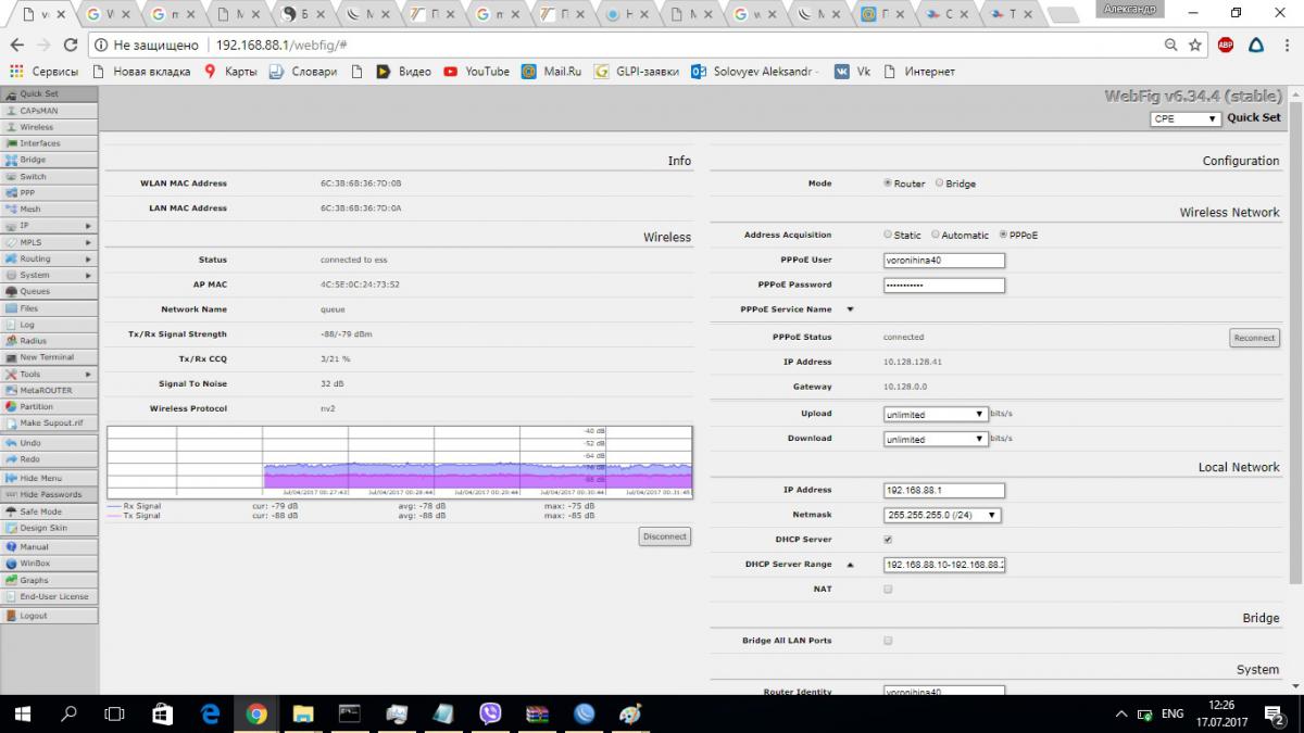 barlog1 Опубликовано 11 апреля, 2017 Опубликовано 11 апреля, 2017 Добрый день договор 899 Пытаюсь подключить маршрутизатор D-link DIR 300 но не получается режим PPPoE ввожу имя и пароль согласно договор все остальные настройки поставил получать от провайдера (адрес, dns.) Вчера только возился с 300. Накатите ему последнюю прошивку (мне помогло), не поможет, телефоны в шапке, звоните будем посмотреть.