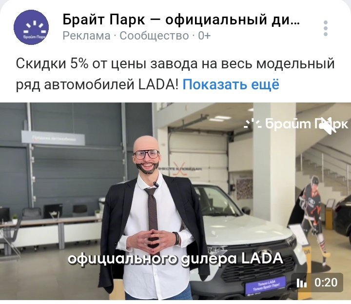 DN Опубликовано 6 апреля Опубликовано 6 апреля Реклама Лады от Брайт Парка. Вот точно не желание купить авто вызывает чувак.