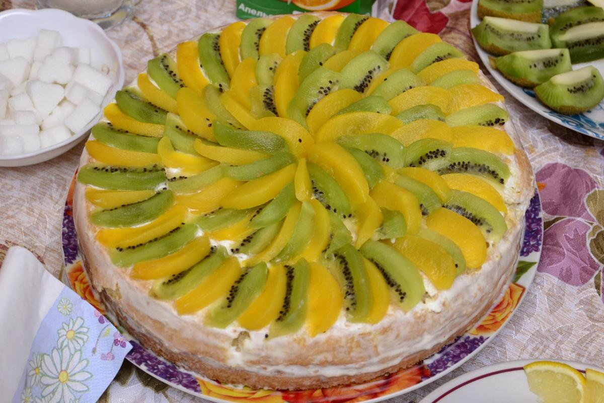 Клэр Опубликовано 26 января, 2014 Опубликовано 26 января, 2014 Насмотрелась здесь тортиков и тоже испекла на День рождения. Пекла тортик впервые, получился очень нежным и вкусным. Рецептик: Для бисквита: 6 яиц, 200г сахара, 150г муки, 2 ч.л. ванильного сахара, 2 ч.л. разрыхлитель щепотка соли для сметанного крема: 350 гр сметаны 20% жирности, 150 гр творожного сыра, типа "Альметте", 100 гр сахарной пудры, 50 гр молока, 1 ст. л. желатина, консервированные персики. для украшения: консервированные персики, киви