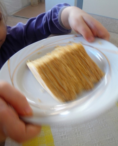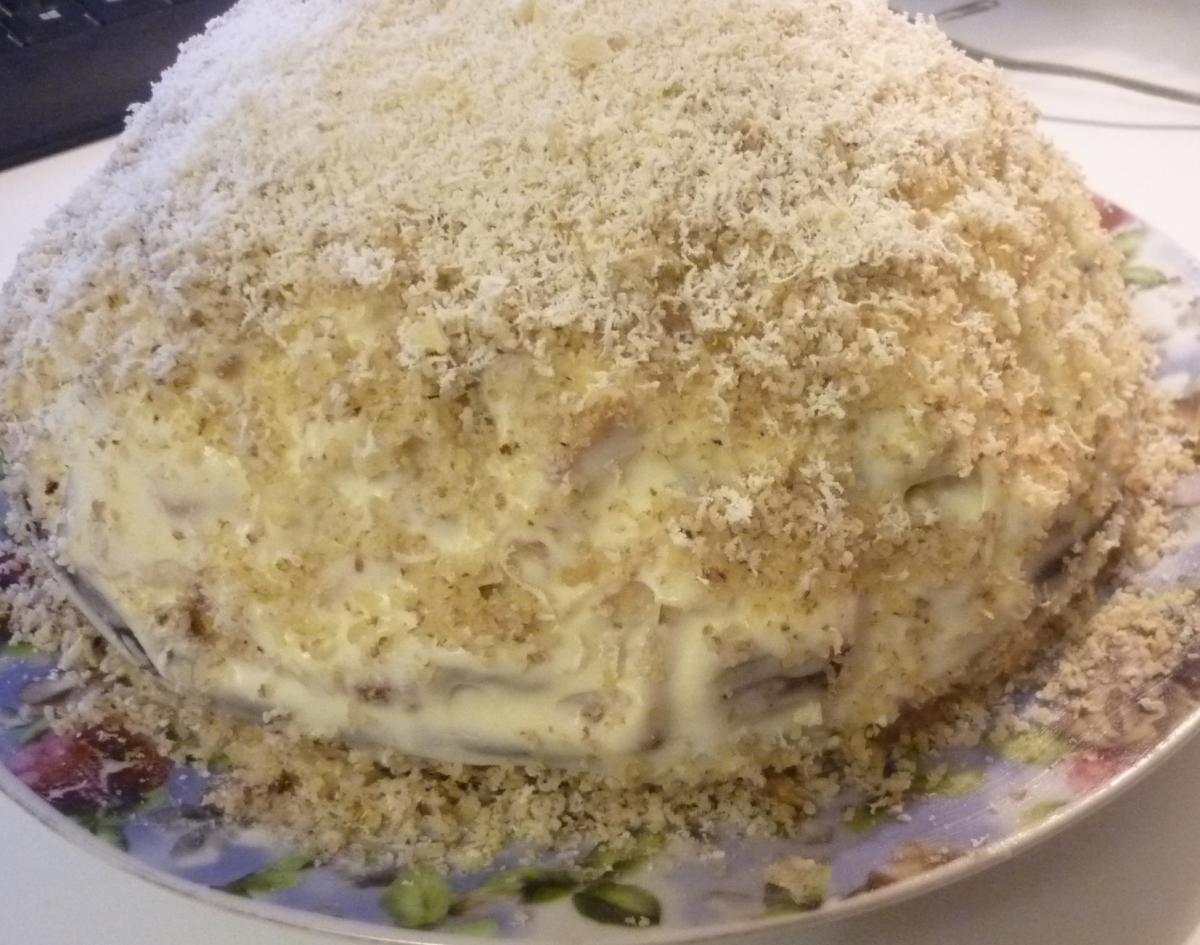 adelinnnka Опубликовано 29 марта, 2018 Опубликовано 29 марта, 2018 Сметанный торт из крекера Очень популярный, быстрый, легкий рецепт. Крекер можно заменить нарезанным бисквитом или любым другим печеньем, добавить по желанию фрукты, нарезанное кубиками желе, можно также не смешивать печенье и сметану, а выложить все слоями, убрать шоколад или заменить его джемом, вареньем и т. д., главное — фантазия. Ингредиенты: Сметана — 500 г Сахарная пудра — 150 г Желатин — 30 г. (2 пакетика) Печенье “крекер” — 300 г. Шоколад — 200 г. (2 плитки) Фрукты — для украшения (бананы, виноград, клубника) Желе для тортов — 1 упаковка Приготовление: 1. Замочить желатин в небольшом количестве холодной воды, дать разбухнуть. Смешать сметану и сахарную пудру. Растопить желатин на водяной бане и ввести в сметану, быстро помешивая. 2. Крекер поломать. Добавить к сметане, перемешать. 3. Разьемную форму застелить пищевой пленкой. Натереть шоколад. Выложить сметану в три слоя, пересыпая шоколадом. Поставить в холодильник на час-два. 4. Украсить фруктами, полить желе для тортов (или обычным, разведенным в меньшем количестве воды, для лучшего застывания). Поставить в холодильник до полного застывания (лучше на ночь). Сметанный торт из крекера готов.