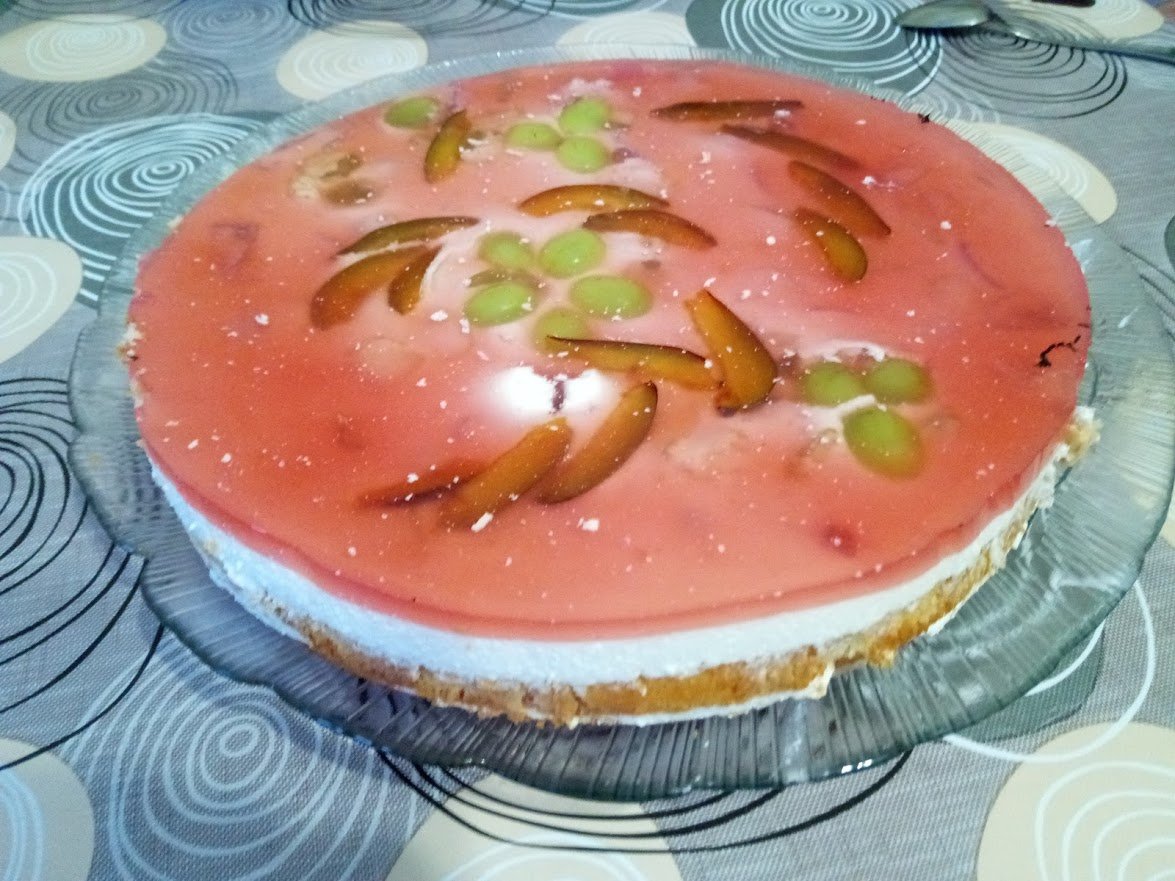 Нет Опубликовано 24 сентября, 2019 Опубликовано 24 сентября, 2019 Тортики меня не отпускают) Вариации тортиков без выпечки. На этот раз сварила насыщенный компот из слив, распустила в нем желатин и вылила на почти застывшую сметану. Ручки конечно крючки, сметана кое где прорвалась и всплыла хлопьями, но на вкусе это никак не отразилось. Разъемная форма, обмотанная снаружи пищевой пленкой 100% гарантия от протечек.
